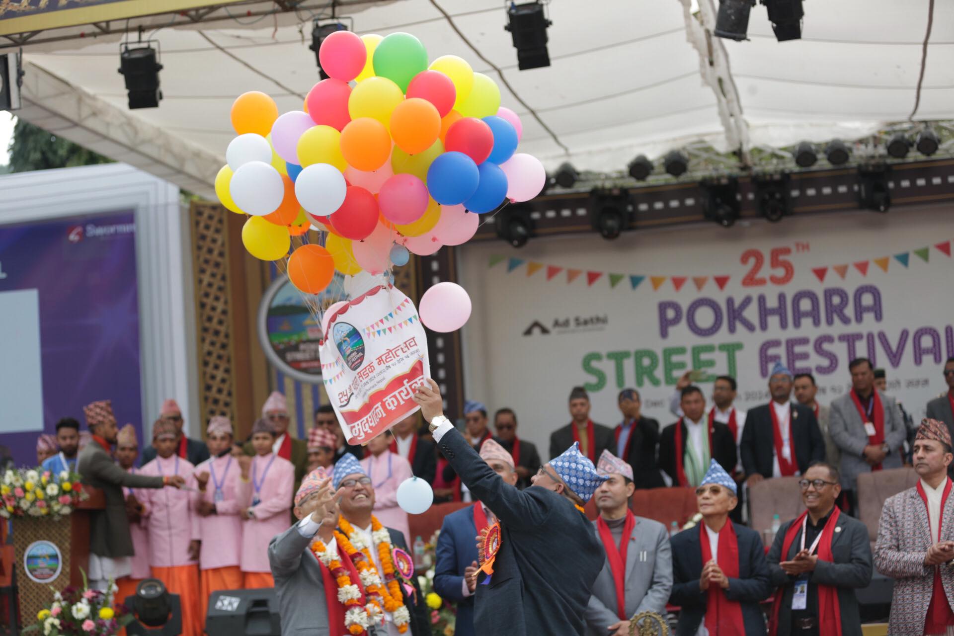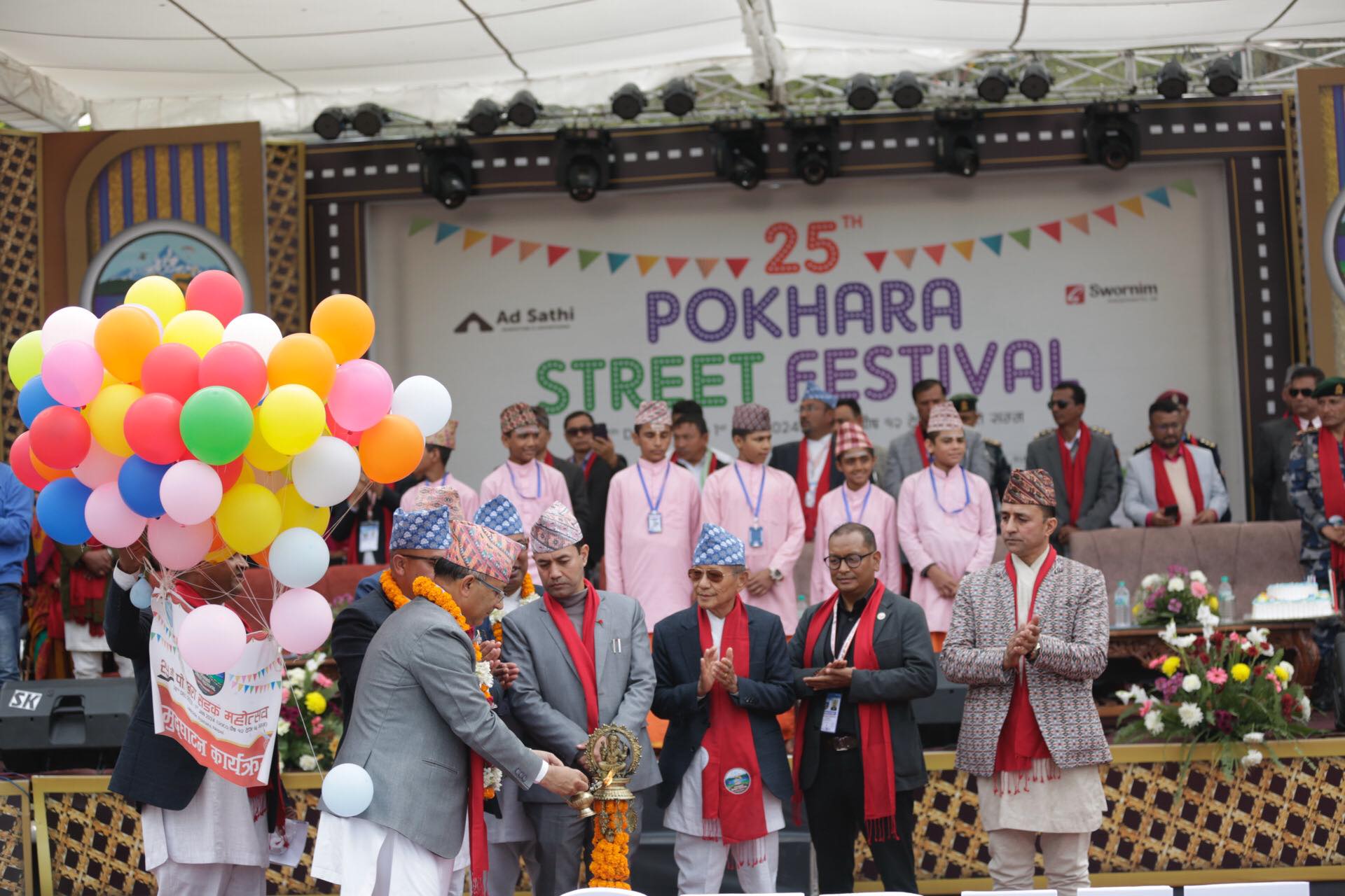 पोखरा । ‘सडकमै खाऔँ सडकमै रमाऔँ’ नारासहित पोखरामा २५ औँ पोखरा सडक महोत्सव सुरु भएको छ।पोखराको हल्लन चोकबाट विभिन्न सांस्कृतिक झाँकी, परम्परागत पन्चे बाजासहित महोत्सवले आफ्नो सुरुवात गरेको हो। सांस्कृतिक झाँकीसहितको बाजागाजा टोली कोमा जाने पार्कमा प्रवेश गरेका थिए। कार्यक्रम पोखराका स्थानीय क्लब तथा आमा समूहको उल्लेख्य उपस्थिति रहेको छ।अङ्ग्रेजी नयाँ वर्षको पूर्व सन्ध्यामा हरेक वर्ष यो महोत्सव हुने गरेको छ। महोत्सवलाई रेष्टुरेन्ट तथा बार एशोसियशन नेपालले (रेवान) आयोजना गर्ने गरेको छ। डिसेम्बर २८ देखि जनवरी १ तारिखसम्म चल्ने यो महोत्सवमा कोमा जाने विभिन्न सांस्कृतिक सांगीतिक, विभिन्न मनोरञ्जनात्मक कार्यक्रमहरू हुने गरेको छ भने लेकसाइडको करिब ३ किलोमिटर सडकखण्डमा त्यहाँका रेष्टुरेन्टहरुले आफ्ना पकवानहरू पस्किने गरेका छन् ।महोत्सवमा राष्ट्रियस्तरमा चर्चित गायकहरू दीपक बज्राचार्य, र्‍यापर लाहुरे, र्‍यापर राजन केसी शिला आले, समीक्षा अधिकारी, बद्री पँगेनी, पशुपति शर्मा, पुरुषोत्तम न्यौपाने, मुक्ति एण्ड रिभाइबल, मोक्ष ब्यान्ड आदि चर्चित गायक गायिका एवम् ब्याण्डहरुले आफ्नो प्रस्तुति दिनेछन्। महोत्सवमा रेवानले  एड साथी तथा स्वर्णिम इन्टरटेन्मेन्टसँग व्यवस्थापकीय सहकार्य र ‘नोस्टाल्जिक-थ्री’सँग  फूड कोर्ट पार्टनरका रूपमा सहकार्य गरिरहेको छ।