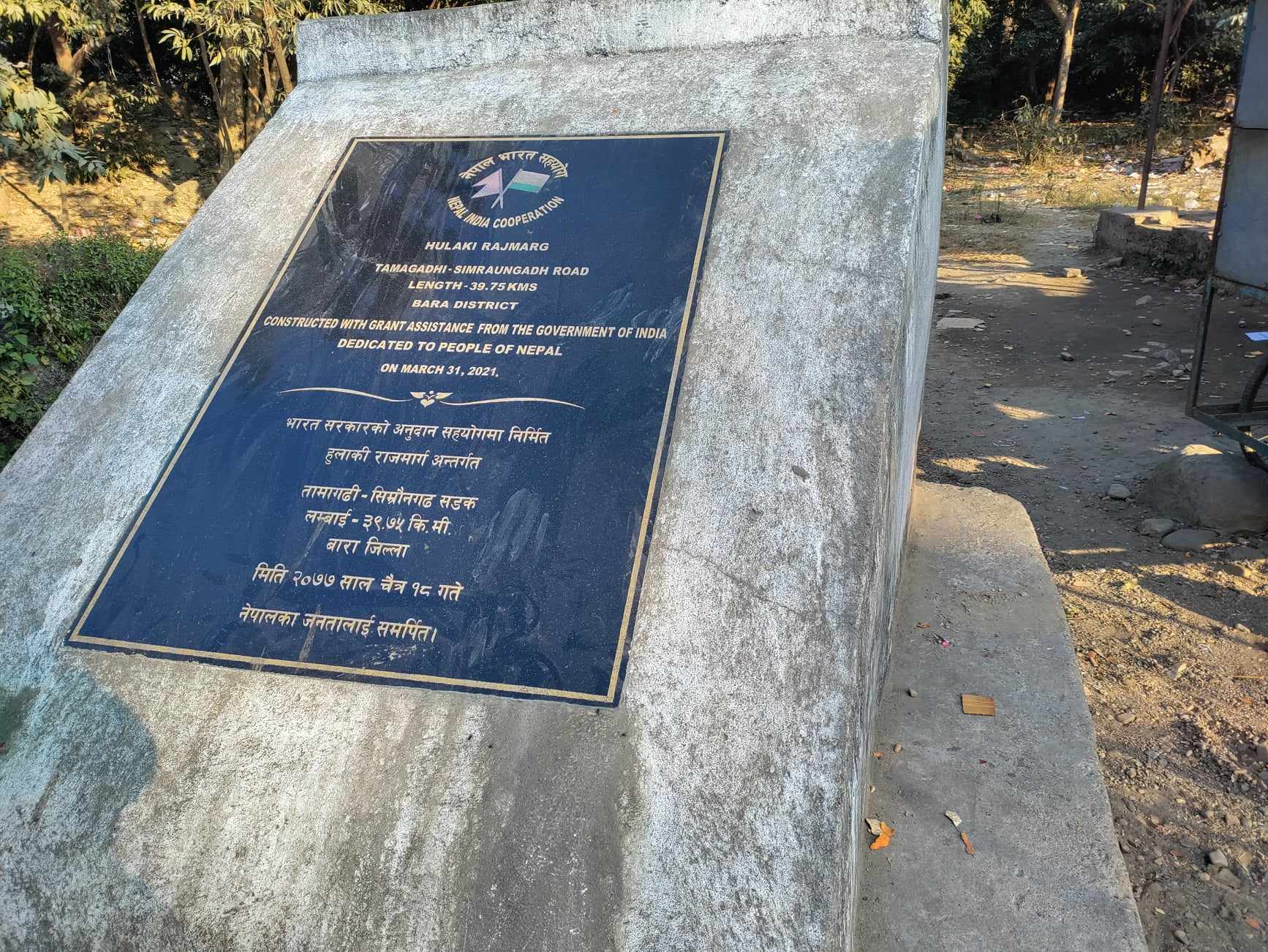 बारा । नेपाल र भारत सरकारको आर्थिक सहयोगमा निर्माण गरिएको बाराको तामागढीदेखि सिम्रौनगढ हुलाकी सड्कखण्डको निर्माण सम्पन्न भएको तीन बर्ष भईसकेको छ । सडक विकासमार्फत कृषि, व्यापार, उद्योग र पर्यटनको विकास गरी तराई/मधेशका जनताको जीवनस्तर उकास्ने उद्देश्यसहित निर्माण भएको थियो । बाराको निजगढ नगरपालिकाको पश्चिम दक्षिणबाट कोहल्बी नगरपालिका, आदर्श कोतवाल गाँउपालिका, सिम्रौनगढ नगरपालिका जोड्ने तामागढी–सिम्रौनगढ हुलाकी राजमार्गको कुल लम्बाई ३९.७५ किलो मिटर रहेको छ । आयोजनाको २०७७ चैत्र १७ गते सम्पन्न भएको उक्त मार्गबाट रौतहटको फतुुवा बिजयपुर नगरपालिका, मौलापुर नगरपालिका, बाराको निजगढ नगरपालिका, कोल्हबी नगरपालिका, बारागढी गाउँपालिका, आदर्श कोतवाल गाउँपालिका र सिम्रौनगढ नगरपालिका लगायतका जनताहरू लाभान्वित भएका छन् तर, बाराको आदर्श कोतवाल गाँउपालिका–५ स्थीत टेढाकट्टीमा भने यस मार्गको निमार्ण देखीनै सुरु भएको बिवादका कारण करिब १.५ डेढ किलोमिटर सडक हालसम्म पनि सम्पन्न हुन सकेको छैन ।