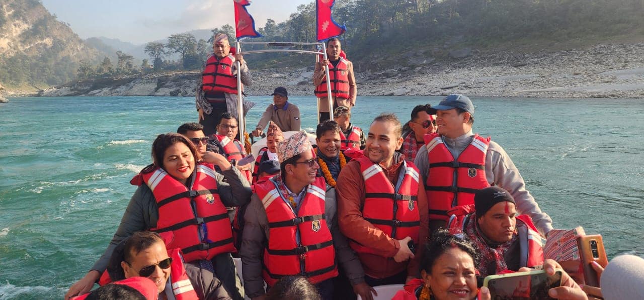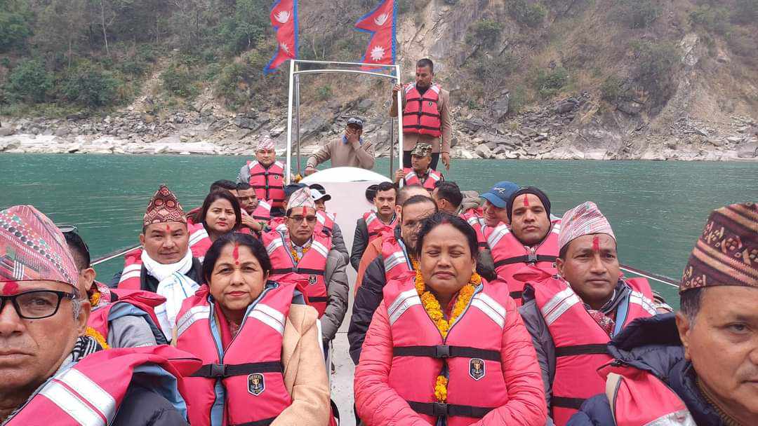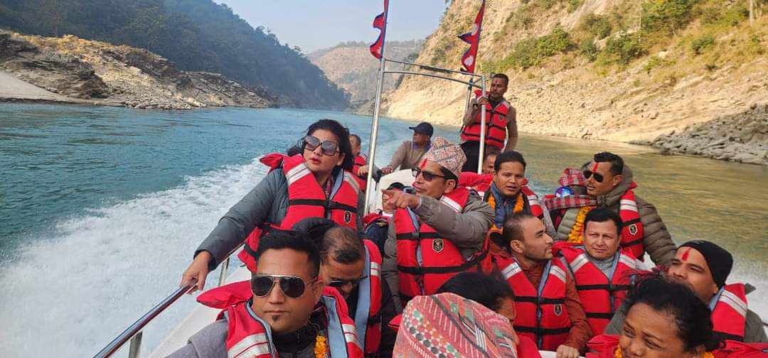 कैलाली । कैलालीस्थित कर्णाली नदिमा एसके मोटर बोड पानी जहाज सञ्चालनमा आएको छ । स्काई बर्ड एडभेन्चर स्पोर्ट्स प्रालिले पर्यटक घुमाउने उद्देश्यले सञ्चालन गरिरहेको कम्पनीले जनाएको छ । स्काई बर्ड एडभेन्चर स्पोर्ट्स प्रालिको लगानी रहेको सो पानी जहाजले एकै पटक २५ जना यात्रुलाई बोक्न सक्ने क्षमता छ । नेपालमा आन्तरिक तथा वाहृय पर्यटकलाई लक्षित गर्दै कर्णाली नदिमा (पानी जहाज) को परीक्षण यात्रा गरि सकेपछि उद्घाटन गरिएको स्काई बर्ड एडभेन्चर स्पोर्ट्स प्रालिले जनाएको छ । उद्घाटन कार्यक्रममा सुदुरपश्चिम प्रदेशका मुख्यमन्त्री कमल बहादुर शाहले