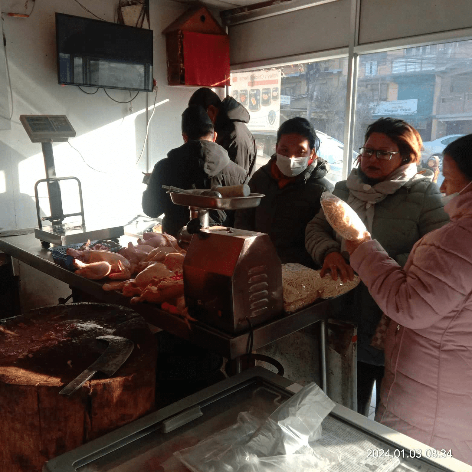 भक्तपुर । भक्तपुर नगरपालिका पसल अनुगमन समितिका संयोजक राजकृष्ण गोराको संयोजकत्वमा गरुद्धकुण्डदेखि च्याम्हासिहसम्म रहेको मासु पसलहरुको बुधबार अनुगमन गरियो ।अनुगमनका क्रममा धेरै पसलहरुमा मासुहरु खुल्ला राख्दा धुवा धुलो र झिंगाले भन्किने भएकोले सिसाको बाकस बनाई मासु छोपेर बेच्न निर्देशन दिएयो ।अनुगमनमा तुल्सीनारायण शाहीको मासु पसल नवीकरण गर्न, मासुहरु खुल्ला राख्दा धुवा धुलो र झिंगाले भन्किने भएकोले सिसाको बाकस बनाई मासु जालिले छोपेर राख्न, सरसफाईमा ध्यान दिन, एप्रोन सेतो प्रयोग गर्न, भुई, भित्ता पानी नसोसिने र सजिलै सफा गर्न मिल्ने गरी कार्पेट वा टायल राख्न, प्रयोग गरेको पानी बाटोमा नआउने गरी निकास व्यवस्थित गर्न, पेटी र पेटीमुनि सामान नराख्न निर्देशन दियो ।त्यस्तै च्याम्हासिंह फ्रेस मिट पसल नवीकरण गर्न, मासुहरु खुल्ला राख्दा धुवा धुलो र झिंगाले भन्किने भएकोले सिसाको बाकस बनाई मासु जालीले छोपेर राख्न, सरसफाईमा ध्यान दिन, एप्रोन सेतो प्रयोग गर्न, भुई, भित्ता पानी नसोसिने र सजिलै सफा गर्न मिल्ने गरी कार्पेट वा टायल राख्न, प्रयोग गरेको पानी बाटोमा नआउने गरी निकास व्यवस्थित गर्न, पेटी र पेटीमुनि सामान नराख्न, सरसफाईमा ध्यान दिन, एप्रोन सेतो प्रयोग गर्न, प्रयोग गरेको पानी बाटोमा नआउने गरी निकास व्यवस्थित गर्न, पेटी र पेटीमुनि सामान नराख्न निर्देशन दिई तराजू नवीकरण नभएकोले जफत गरी बासी र विग्रेको मासु २२ किलो जफत गरी नष्ट गरियो ।जय जय श्री ब्रम्हायणी कोल्ड स्टोर सरसफाईमा ध्यान दिन, एप्रोन सेतो प्रयोग गर्न निर्देशन दियो । त्यस्तै भक्तपुर आर कोल्ड स्टोर धेरै बर्षको नविकरण बाकि भएकोले तीन दिनभित्र नवीकरण गर्न, सरसफाईमा ध्यान दिन, एप्रोन सेतो प्रयोग गर्न, भुई, भित्ता पानी नसोसिने र सजिलै सफा गर्न मिल्ने गरी कार्पेट वा टायल राख्न, प्रयोग गरेको पानी सजिलै बाहिर जाने निकास व्यवस्था गर्न निर्देशन दियो ।त्यस्तै भक्तपुर चिकेन हाउस नवीकरण गर्न र म्याद नाघेको न्यु भक्तपुर चाउचाउ नष्ट गर्न निर्देशन दियो । त्यस्तै एस एण्ड एस फ्रेस मिट सपमा मासुहरु खुल्ला राख्दा धुवा धुलो र झिंगाले भन्किने भएकोले सिसाको बाकस बनाई मासु जालिले छोपेर राख्न, सरसफाईमा ध्यान दिन, एप्रोन सेतो प्रयोग गर्न, भुई, भित्ता पानी नसोसिने र सजिलै सफा गर्न मिल्ने गरी कार्पेट वा टायल राख्न, प्रयोग गरेको पानी बाटोमा नआउने गरी निकास व्यवस्थित गर्न निर्देशन दिएको वडा निरिक्षक रामकृष्ण प्रजापतिले जानकारी दिए । अनुगमनमा भक्तपुर नगरपालिका अनुगमन समितिका सदस्य श्यामकृष्ण खत्री, रोशमैया सुवाल, ज्ञानबहादुर मानन्धर, भनपा श्यानिटेशन उपशाखाका प्रमुख दिलिपकुमार सुवाल, वडा निरीक्षक रामकृष्ण 