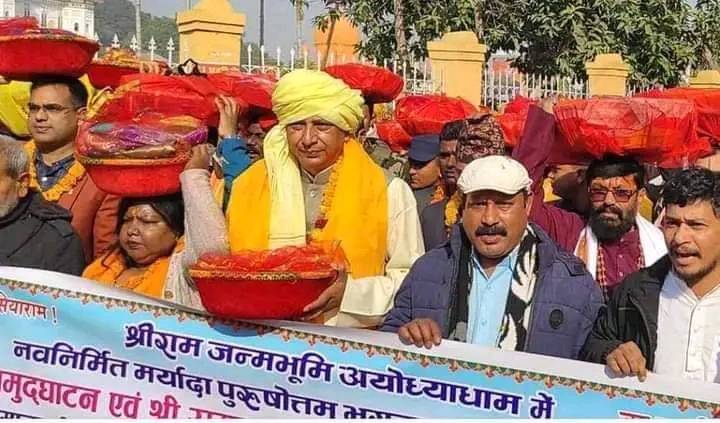 काठमाडौं । भारतको अयोध्यामा प्राण प्रतिष्ठा हुन लागेको राम मन्दिरका लागि कोशेली पठाईएको छ ।जनवरी २२ मा भारतीय प्रधानमन्त्री नरेन्द्र मोदीले प्राण प्रतिष्ठा गर्न लागेको सो मन्दिरका लागि जानकीको माइतिपक्षबाट ११ सयवटा कोशेली पठाइएको हो ।जनपुरमा आयोजित एक समारोहका बिचमा मधेस प्रदेशका मुख्यमन्त्री सरोजकुमार यादवले सो कोसेली हस्तान्तरण गरेका छन । जनकपुरवाट जाने कोशेलीमा धनुष, खराऊ, पलङ देखी आवाश्यक समान सबै पठाइएको छ ।जानकी मन्दिर, जनकपुरका महन्थका अनुसार सो कोसेलीहरुमा सारी, धोती, गरगहना, पलङ, टेबुल, कुर्सी, चुल्हो, विभिन्न प्रकारका मिठाइसहित जनकपुरबाट अयोध्या प्रस्थान गरेको छ ।