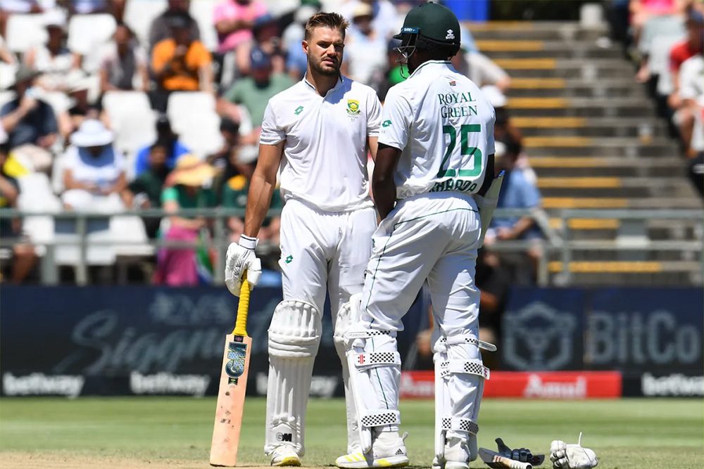काठमाडौँ। जारी दोस्रो टेस्टमा दक्षिण अफ्रिकाले भारतलाई ७९ रनको लक्ष्य पाएको छ । टेस्टको दोस्रो दिन आफ्नो दोस्रो इनिंगमा दक्षिण अफ्रिका १७६ रन बनाएर अलआउट भएपछि भारतले ७९ रनको लक्ष्य पाएको हो । दक्षिण अफ्रीकाका लागि एडेन मार्क्रमले १०६ रनको शतकीय पारी खेलेका थिए । उनलाई अन्य ब्याट्सम्यानले साथ दिएका थिएनन् । त्यस्तै भारतीय बलर जसप्रित बुमराहले सर्बाधिक ६ विकेट लिएका थिए भने मुकेश कुमारले २ विकेट लिएका थिए । त्यस्तै मोहमद सिराज र प्रसिद्ध कृष्णले एक एक विकेट लिएका थिए । यसअघि दक्षिण अफ्रिका पहिलो इनिंगमा ५५ रनमा अल आउट भएको थियो भने भारतले १५३ रन बनाएको थियो । अब भारतले दोस्रो टेस्ट जित्न ७९ रन आवश्यक रहेको छ । २ खेलको सिरिजमा दक्षिण अफ्रिका १-० ले अगाडी रहेको छ ।