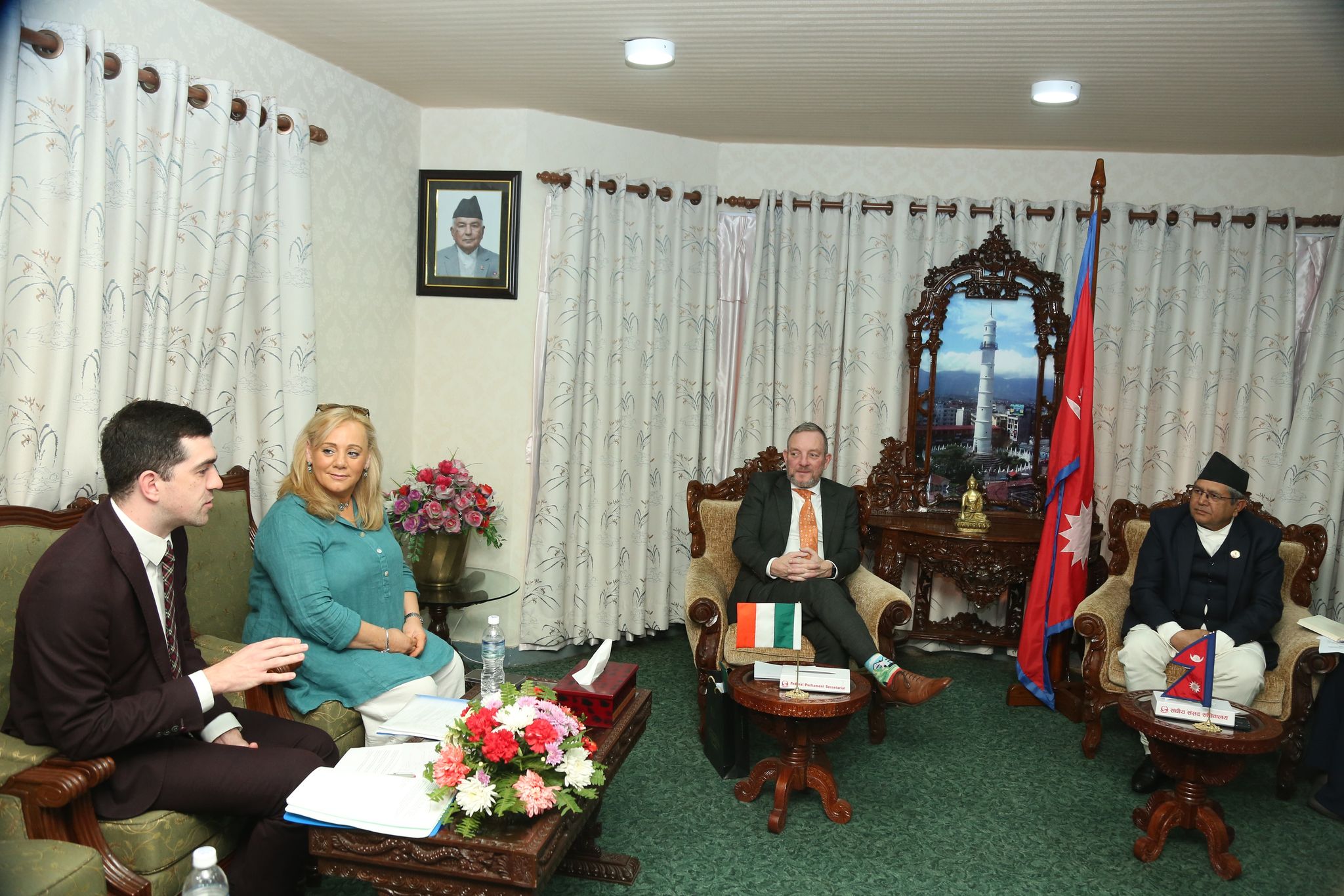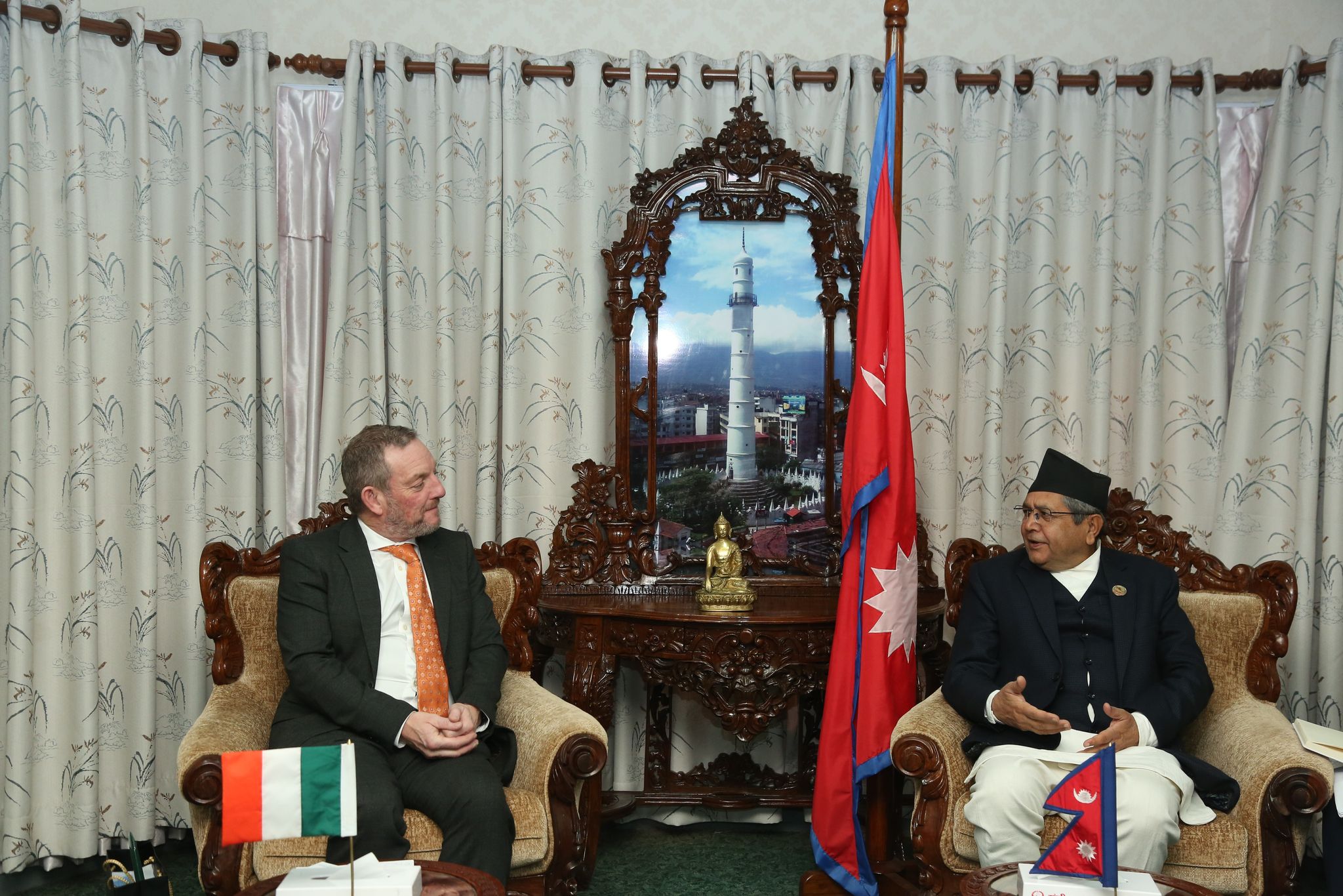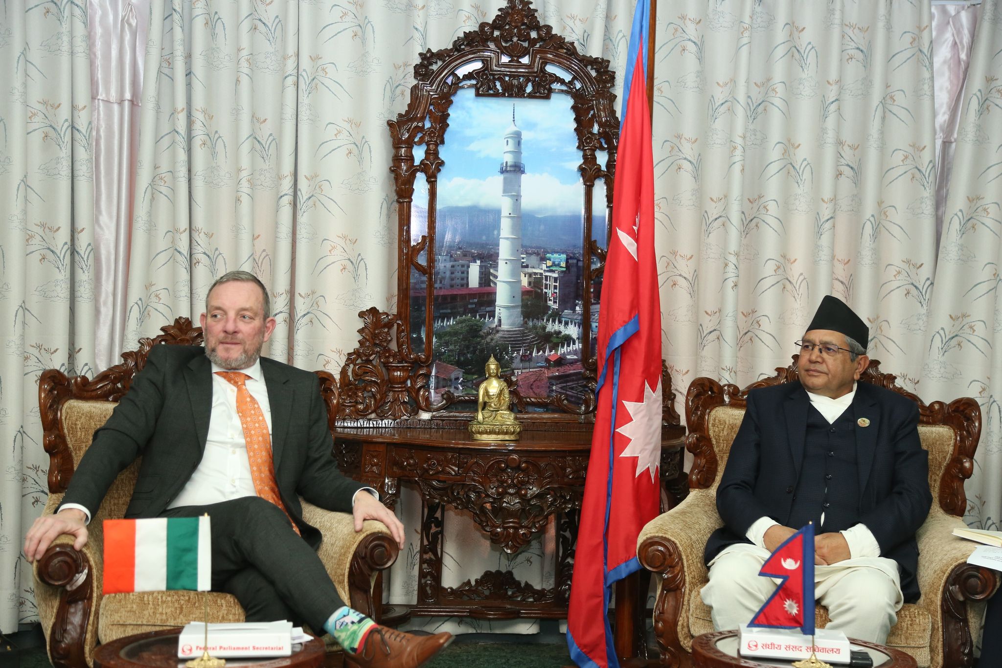 काठमाडौं। प्रतिनिधिसभाका सभामुख देवराज घिमिरे र आयरल्याण्डको माथिल्लो सभा शाअनड एरेनका अध्यक्ष जेरी बट्टिमरबीच मंगलबार शिष्टाचार भेटवार्ता भएको छ । नेपालको पाँच दिने औपचारिक भ्रमणमा आएका अध्यक्ष बट्टिमरसँग सिंहदरबारस्थित सभामुखको कार्यकक्षमा भएको भेटमा दुई देशबीचको सम्बन्ध, संसदीय आदान प्रदान लगायतका विषयमा छलफल भएको छ ।भेटका क्रममा सभामुख घिमिरेले सन् १९९९ अगस्त १९ मा कूटनीतिक सम्बन्ध स्थापना भएपश्चात नेपाल र आयरल्याण्डबीच मैत्रिपूर्ण एवम् सौहार्द्रपूर्ण सम्बन्ध रहिआएकोमा खुशी व्यक्त गरे ।