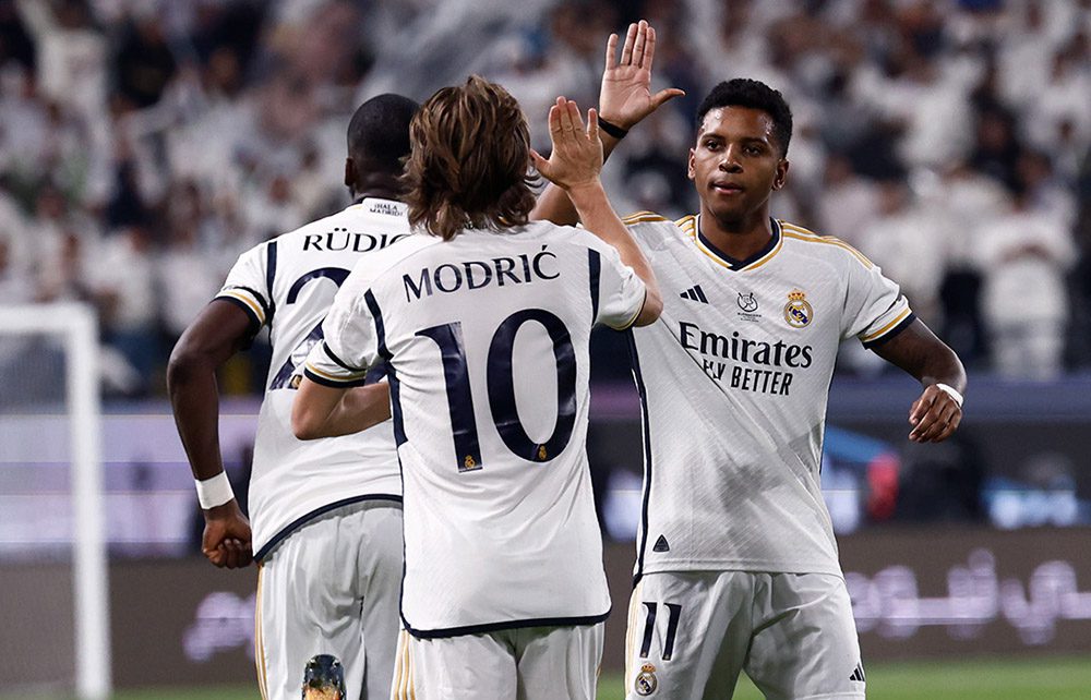 काठमाडौँ । रियल म्याड्रिड स्पेनिस सुपर कोपाको फाइनलमा पुगेको छ ।गएराती सम्पन्न खेलमा एटलेटिको म्याड्रिडलाई ५-३ गोल अन्तरले पराजित गर्दै रियल म्याड्रिड सुपर कोपाको फाइनलमा पुगेको हो ।निर्धारित ९० मिनेटको खेलमा दुवै क्लबले ३-३ गोल गरेपछि खेल ३० मिनेटको अतिरिक्त समयमा गएको थियो । अतिरिक्त समयमा रियल म्याड्रिडले २ गोल थपेपछि खेल ५-३ ले जितेको थियो ।रियल म्याड्रिडका लागि एन्टोनियो रुडीगेर, फेर्लान्ड मेन्डी, डानी कार्भाजल, जोसेलु र ब्राहिम डियाजले एक एक गोल गरेका थिए ।