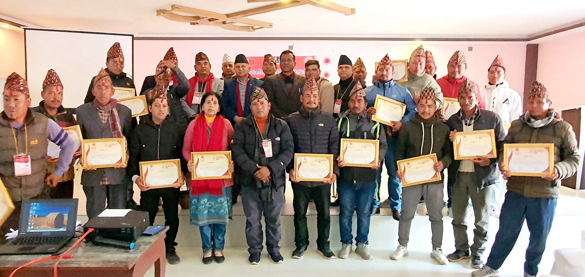 काठमाडौं । नेकपा एमाले जिल्ला कमिटी दाङले रुकुम पश्चिममा भूकम्पले क्षति पुर्याएको स्थानमा अस्थायी घर टहरा बनाएर फर्किएका नेता कार्यकर्तालाई सम्मान गरेको छ । जिल्लाको घोराहीमा पार्टीले आयोजना गरेको जिल्ला स्तरीय प्रशिक्षण कार्यक्रममा उहाँहरूलाई सम्मान गरिएको हो । एमाले महासचिव शंकर पोखरेलले उहाँहरूलाई टोपी, सल तथा प्रमाणपत्र सहित सम्मान गरेका हुन् । उनीहरूलाई सम्मान गर्दै महासचिव पोखरेलले दुःख र कठिन अवस्थामा सहयोग पुर्याएको भन्दै टोलीका सम्पूर्ण सदस्यलाई धन्यवाद दिए ।