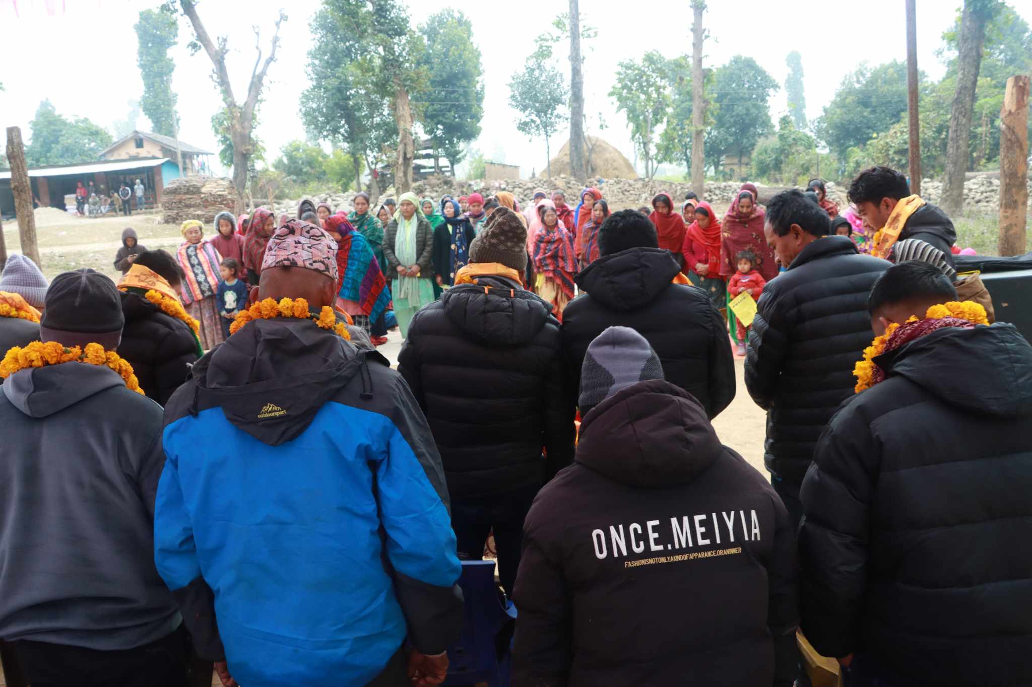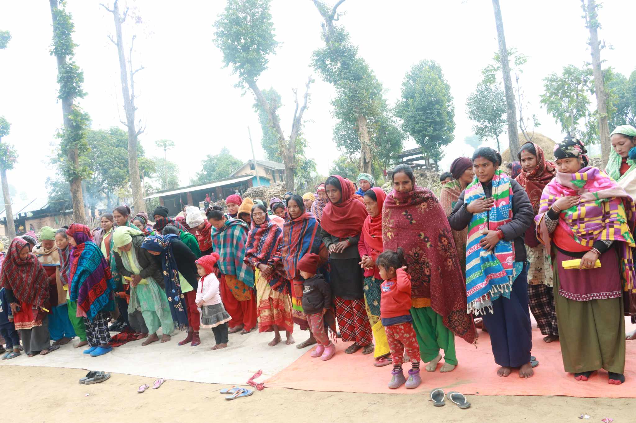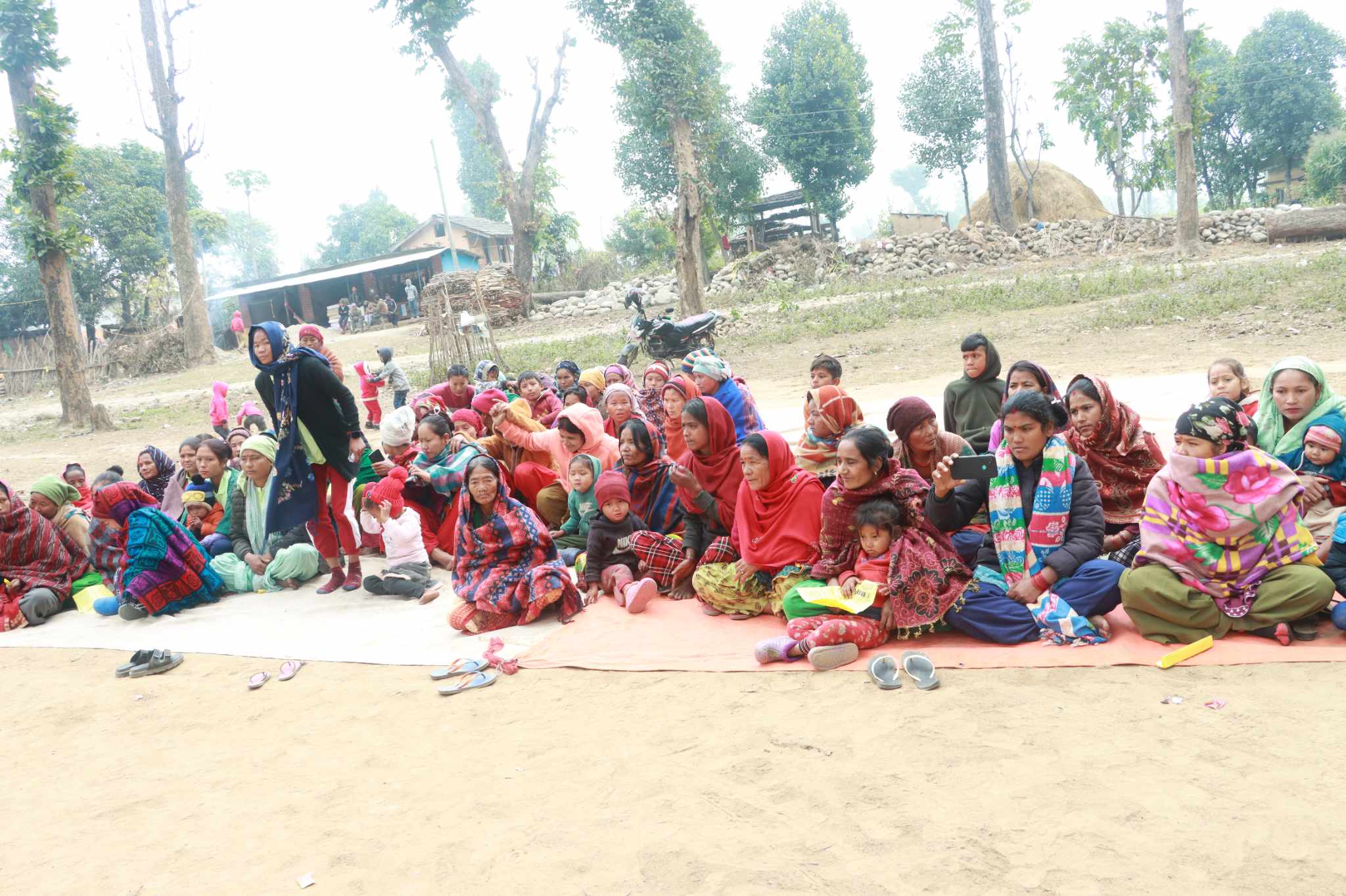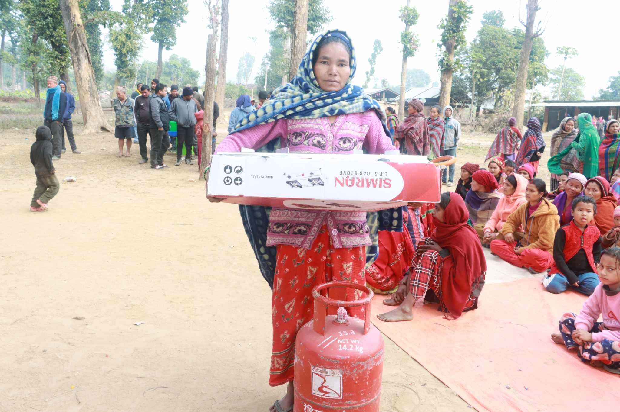 कैलाली । कैलाली जिल्लाको मोहन्याल गाउँपालिका वडा नं ३ फलेविसौनाका विपन्न वर्गका परिवारलाई पानी छान्ने फिल्टर र ग्याँस चुलो सिलिण्डर वितरण गरिएको छ । बुद्ध सामुदायीक वन उपभोक्ता समूहको आर्थिक सहयोगमा गाउँपालिका अध्यक्ष देविदत्त उपाध्याय (हिमशिखर) काे प्रमूख आथित्यमा वितरण गरिएको हो । सामुदायीक वन उपभोक्ता समूहकी सचिव भीम कला थापा मगरले स्वागत मन्तव्य गरेको कार्यक्रममा ५० घरपरिवार परिवारलाई पानी फिल्टर वितरण गरीएको छ भने ५० घर परिवारलाई ग्यास चुलो सिलिण्डर वितरण गरिएको कार्यक्रमका सभापति बुद्ध सामुदायीक वन उपभोक्ता समूहका अध्यक्ष जंग बहादुर बगालेले बताए ।