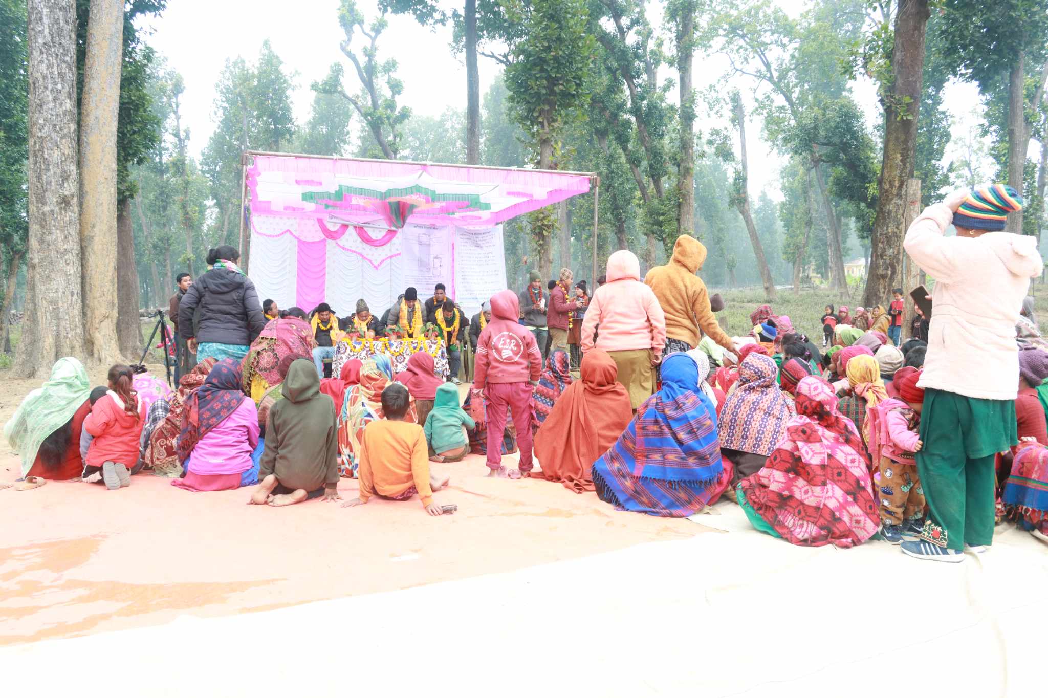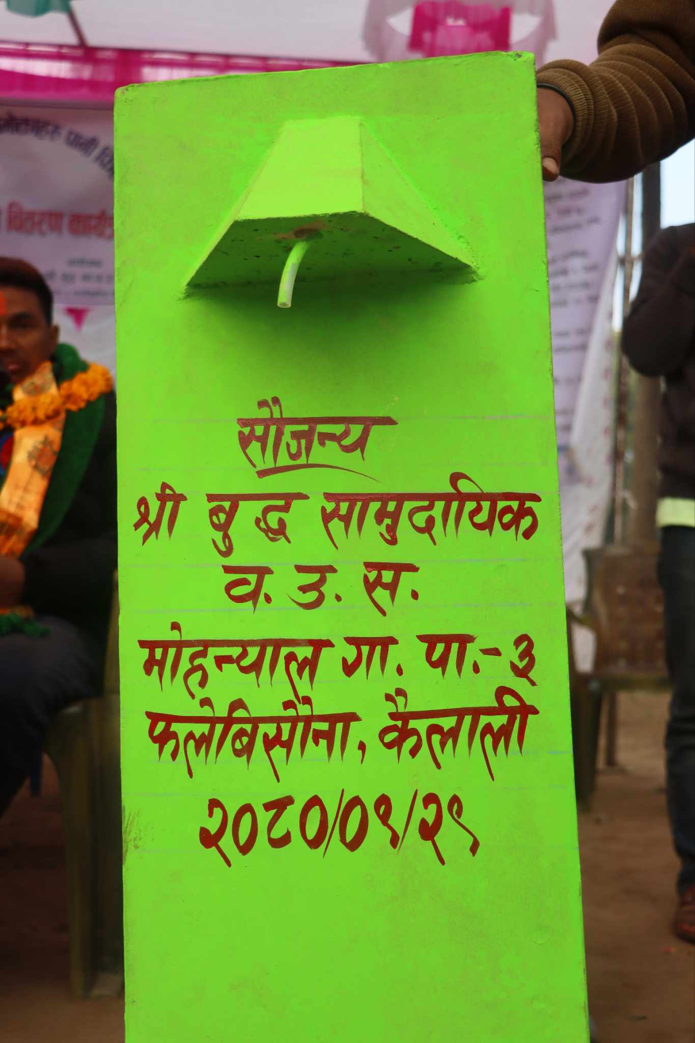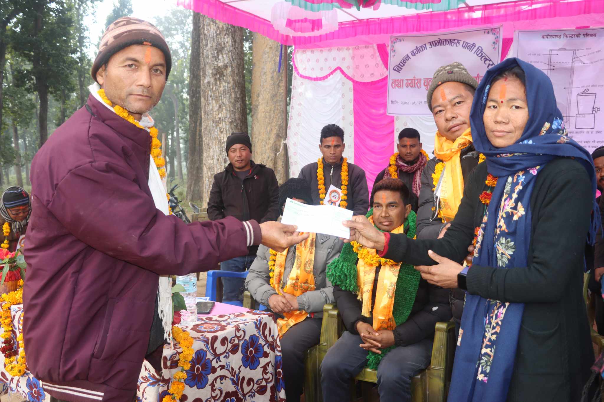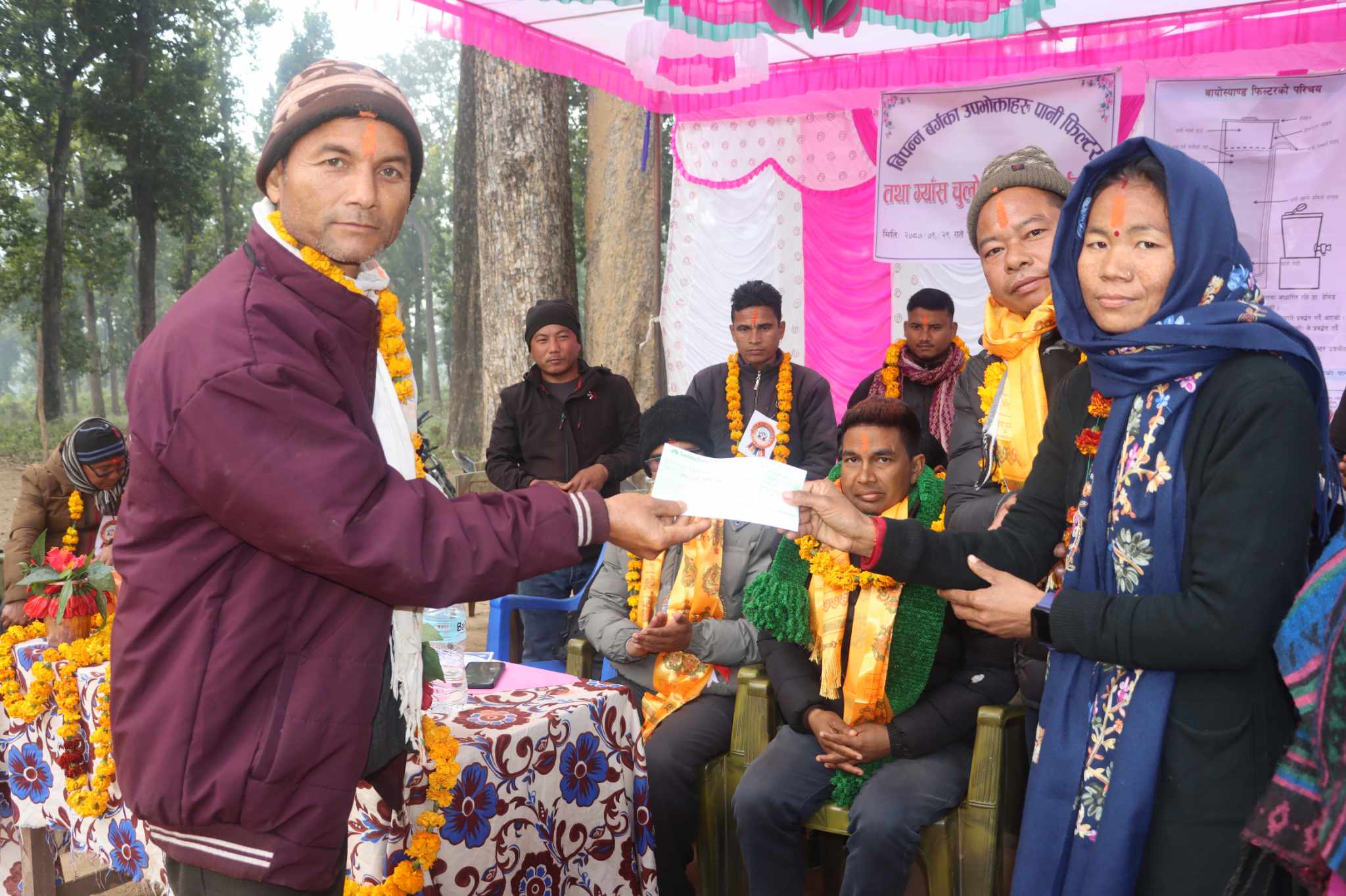 बायोस्याण्ड फिल्टर र ग्याँस चुलो सिलिण्डर वितरण कार्यक्रममा सामुदायीक वनका पदािधकारी , कर्मचारी तथा स्थानीय समाजसेवी बुद्धिजीवीहरु उपस्थितिमा वितरण गरिएकाे हाे । कार्यक्रम संचालक सामुदायीक वन उपभोक्ता समूहका सह- सचिव योगेश बगाले मगरले गरेका थिए। सामुदायीक वनका ९४ घरधुरीलाई निशुल्क फिल्टर र ग्याँस चुला सिलिण्डर वितरण गरेको हो । वन पैदावरको खपत कम गर्नलाई फिल्टर र ग्याँस चुलो सिलिण्डर वितरण गरेको समूहका अध्यक्ष जंग बहादुर बगालेले जानकारी दिनुभयो । झण्डै ६ लाख रुपैयाँको लगानीमा वन पैदावरको खपत कम गर्नलाई शुद्ध खानेपानीको लागि फिल्टर र ग्याँस चुलो सिलिण्डर वितरण गरेको समूहका अध्यक्ष बगालेले जानकारी दिनुभयो । वनबाट उत्पादन भएको ढलापडा काठको दार र दाउरा, संकलित रुपियाँको व्याजबाट प्राप्त रकमलाई वन संरक्षणका लागि प्रयोग गरेको अध्यक्ष बगालेले बताउनुभयो ।