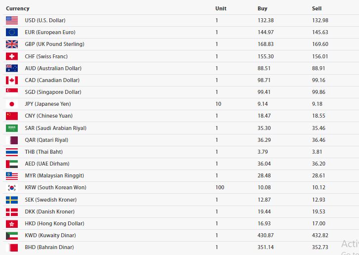 यता, जापानी येन १० को खरिददर ९ रूपैयाँ १४ पैसा कायम हुदाँ बिक्री दर भने ९ रूपैयाँ १८ पैसा रहेको छ । चाइनिज युआन एकको खरिददर १८ रूपैयाँ ४७ पैसा तथा बिक्री दर १८ रूपैयाँ ५५ पैसा तथा दक्षिण कोरिया वन १०० को खरिददर १० रूपैयाँ ८ पैसा तथा बिक्री दर १० रूपैयाँ १२ पैसा कायम गरेको जनाइएको छ । यसैगरी, सोमबार कतारी रियाल एकको खरिदमूल्य ३६ रूपैयाँ २९ पैसा र बिक्रीमूल्य ३६ रूपैयाँ ४५ पैसा कायम गरेको राष्ट्र बैंकले साउदी अरेबियन रियाल एकको खरिददर ३५ रूपैयाँ ३० पैसा र बिक्रीमूल्य ३५ रूपैयाँ ४६ पैसा, युएई दिराम एकको खरिददर ३६ रूपैयाँ ४ पैसा र बिक्रीदर ३६ रूपैयाँ २० पैसा तथा मलेसियन रिंगिट एकको खरिददर सोमबार २८ रूपैयाँ ४८ पैसा र बिक्रीदर २८ रूपैयाँ ६१ पैसा कायम गरेको छ । साथै, कुवेती दिनार एकको खरिददर ४३० रूपैयाँ ८७ पैसा र बिक्रीदर ४३२ रूपैयाँ ८२ पैसा र बहराइन दिनार एकको खरिददर ३५१ रूपैयाँ १४ पैसा र बिक्रीदर ३५२ रूपैयाँ ७३ पैसा तोकिएको राष्ट्र बैंकले जनाएको छ ।