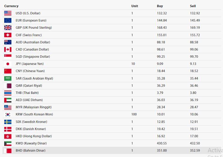 रूपैयाँ ६ पैसा कायम गरेको जनाइएको छ । यसैगरी, मंगलबार कतारी रियाल एकको खरिदमूल्य ३६ रूपैयाँ २९ पैसा र बिक्रीमूल्य ३६ रूपैयाँ ४५ पैसा कायम गरेको राष्ट्र बैंकले साउदी अरेबियन रियाल एकको खरिददर ३५ रूपैयाँ २८ पैसा र बिक्रीमूल्य ३५ रूपैयाँ ४४ पैसा, युएई दिराम एकको खरिददर ३६ रूपैयाँ ३ पैसा र बिक्रीदर ३६ रूपैयाँ १९ पैसा तथा मलेसियन रिंगिट एकको खरिददर मंगलबार २८ रूपैयाँ ३४ पैसा र बिक्रीदर २८ रूपैयाँ ४७ पैसा कायम गरेको छ ।साथै, कुवेती दिनार एकको खरिददर ४३० रूपैयाँ ५५ पैसा र बिक्रीदर ४३२ रूपैयाँ ५० पैसा र बहराइन दिनार एकको खरिददर ३५१ रूपैयाँ र बिक्रीदर ३५२ रूपैयाँ ५९ पैसा तोकिएको राष्ट्र बैंकले जनाएको छ ।