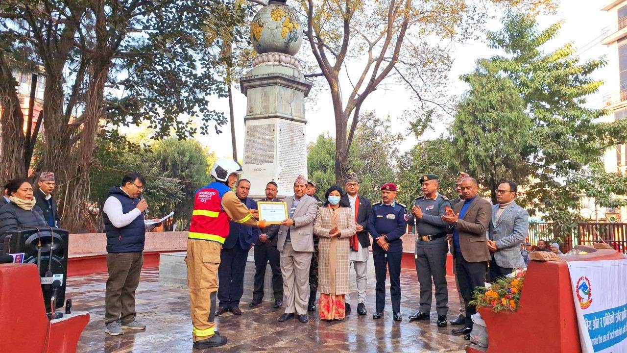 संघीय सरकार पालिकाहरुलाई सामर्थ्यवान बनाउन मिलेर काम गर्न तयार रहेको र सबै स्थानीय तहलाई आपतकालीन कार्यसंचालनका लागि औजार तथा उपकरण उपलब्ध गराउँदै आएको समेत उनले बताृ । विपद् व्यवस्थापनमा खटिने स्वंसेवकलाई राष्ट्रिय प्रणालीमा आबद्ध गर्ने प्रक्रिया सुरु भएको र त्यसमा काठमाडौं महानगरले पनि पहल लिएकोमा उनले खुशी व्यक्त गरे । जाजरकोट भूकम्पमा एम्बुलेन्स र अन्य सहयोग गरेकोमा पनि उहाँले महानगरको प्रशंसा गरे । विद्यमान सबै संरचनाहरुको जोखिम आँकलन गर्ने, प्रबलीकरण लगायतका विधि प्रयोग गरी सुरक्षित बनाउने र नयाँ बन्ने भवन तथा संरचना सुरक्षित हुनेगरी संहिता पालना गर्न,गराउनमा महानगरले अग्रणी भूमिका खेल्ने विश्वास उपप्रधानमन्त्री एवम् गृहमन्त्री श्रेष्ठले व्यक्त गरे ।महानगरकी उपमेयर सुनिता डङ्गोल, नेपाल प्रहरीका महानिरीक्षक बसन्तबहादुर कुवर, शसस्त्र प्रहरीबलका महानिरीक्षक राजु अर्याल, राष्ट्रिय विपद् जोखिम तथा न्युनिकरण प्राधिकरणका कार्यकारी प्रमुख अनिल पोखरेल, महानगरका निमित्त प्रशासकीय अधिकृत सिताराम कोइरालासमेत उपस्थित कार्यक्रममा विपदका बेला भूमिका खेल्ने कर्मचारी र सुरक्षाकर्मीलाई पुरस्कृत गरिएको थियो।