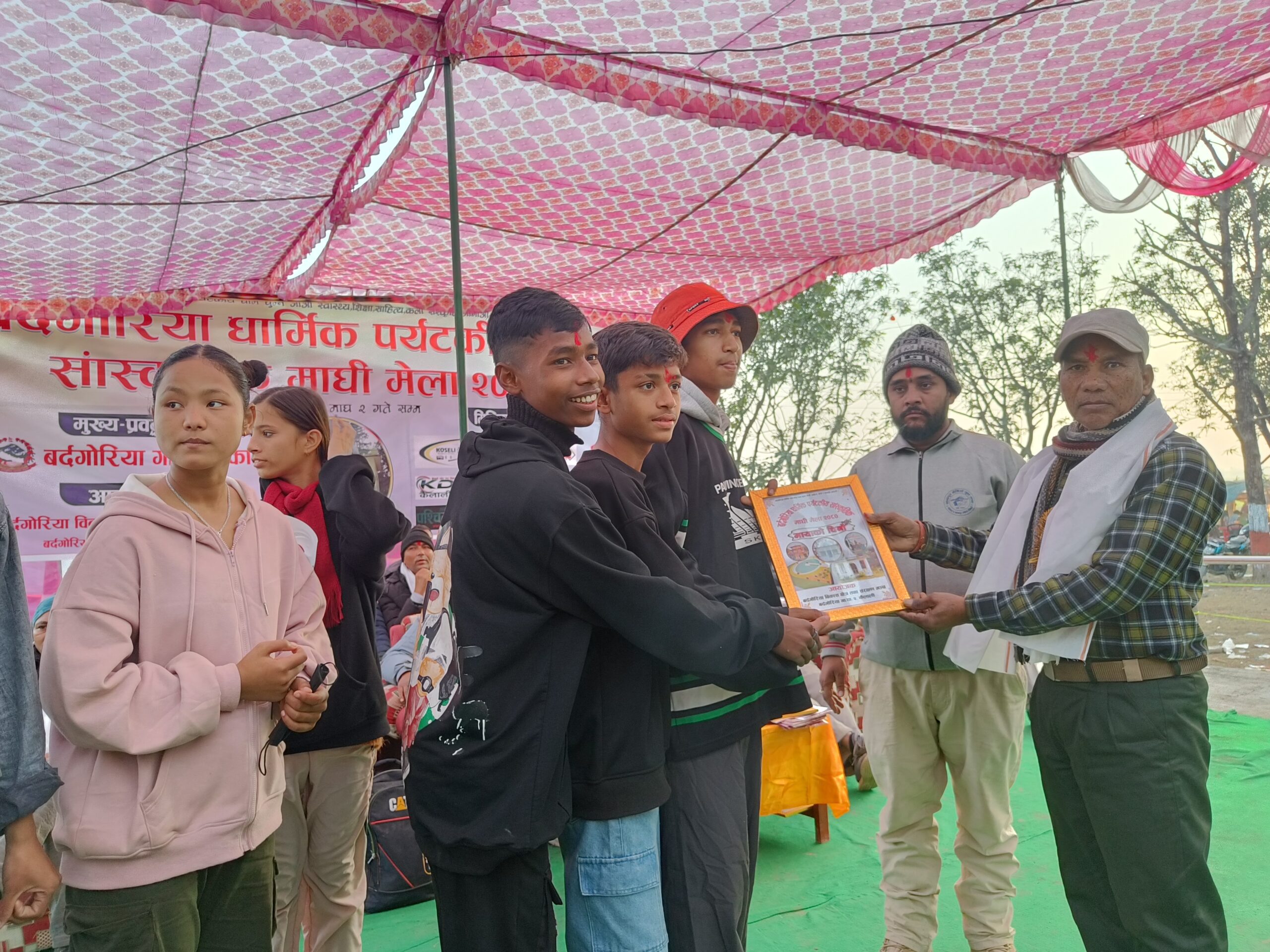 बर्दगोरिया बिकास क्षेत्र तथा संरक्षण मञ्चका अध्यक्ष जगराम चौधरीको सभापतित्वमा भएको कार्यक्रमका प्रमुख अतिथी बर्दगोरिया गाउँपालिका अध्यक्ष कर्ण बहादुर कुँवर रहनु भएको थियो । यसै गरि कार्यक्रममा बिशिस्ट अतिथी पालिका उपाध्यक्ष गणेश राज गिरि रहनु भएको थियो ।कार्यक्रममा मञ्चका सचिव नवीन ढुंगानाको धन्यवाद मन्तव्य संगै सुरु भएको कार्यक्रममा बर्दगोरिया गाउँपालिका वडा नम्बर १ का अध्यक्ष मिथुन गौतम , २ का अध्यक्ष गोबिन्द बि क, ३ का अध्यक्ष मनऋषी आचार्य ,सडकपुर खानेपानी उपभोक्ता समुहका अध्यक्ष भोजराज भट्ट , सहारा घरका संचालक बल बहादुर बिष्ट लगाएतकाले शुभकामना मन्तव्य राख्नु भएको थियो ।मेलामा बिधालय स्तरिय नृत्य प्रतियोगिताका बिजेताहरुलाई प्रमाणपत्रले सम्मान सहित पुरस्कृत गरिएको थियो ।
