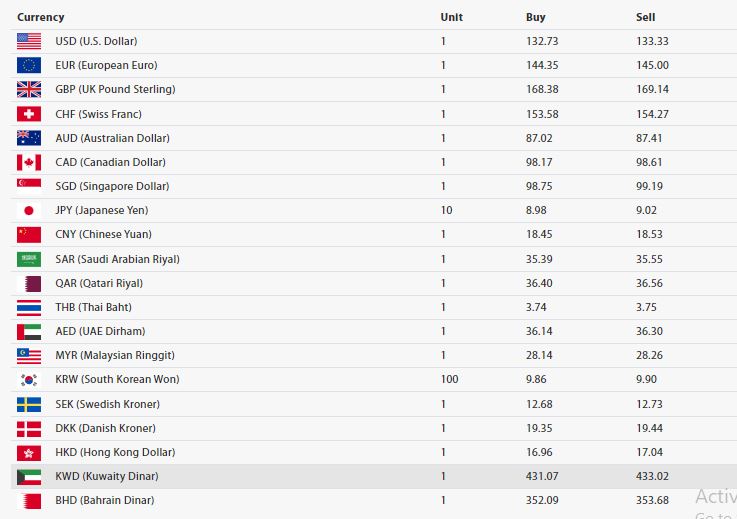 यसैगरी, बिहिबार कतारी रियाल एकको खरिदमूल्य ३६ रूपैयाँ ४० पैसा र बिक्रीमूल्य ३६ रूपैयाँ ६५ पैसा कायम गरेको राष्ट्र बैंकले साउदी अरेबियन रियाल एकको खरिददर ३५ रूपैयाँ ३९ पैसा र बिक्रीमूल्य ३५ रूपैयाँ ५५ पैसा, युएई दिराम एकको खरिददर ३६ रूपैयाँ १४ पैसा र बिक्रीदर ३६ रूपैयाँ ३० पैसा तथा मलेसियन रिंगिट एकको खरिददर बिहिबार २८ रूपैयाँ १४ पैसा र बिक्रीदर २८ रूपैयाँ २६ पैसा कायम गरेको छ । साथै, कुवेती दिनार एकको खरिददर ४३१ रूपैयाँ ०७ पैसा र बिक्रीदर ४३३ रूपैयाँ ०२ पैसा र बहराइन दिनार एकको खरिददर ३५२ रूपैयाँ ०९ पैसा र बिक्रीदर ३५३ रूपैयाँ ६८ पैसा तोकिएको राष्ट्र बैंकले जनाएको छ ।