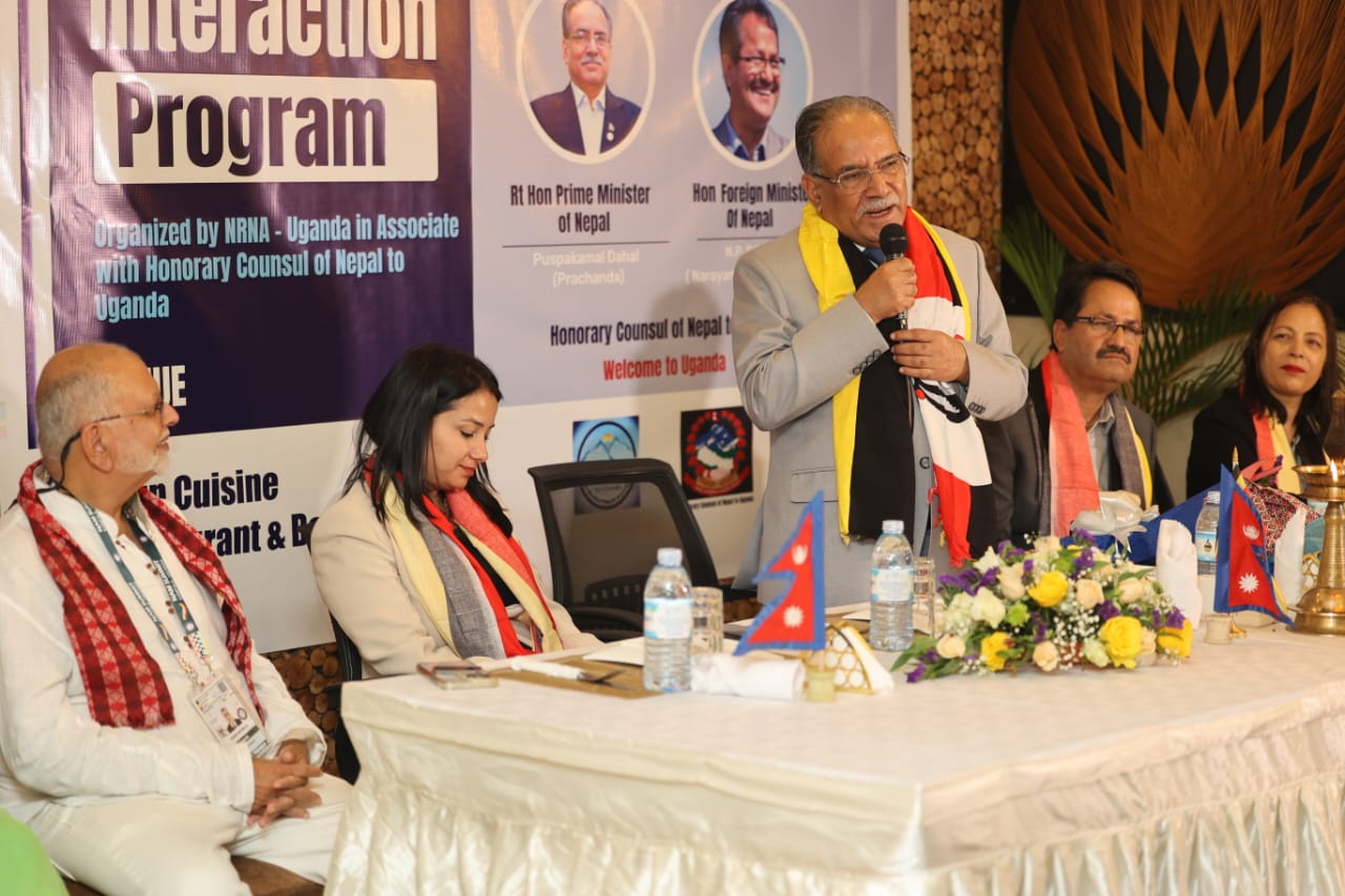 “विदेशमा रहेका नेपालीहरूको समस्या सम्बोधन नगरी देशले गति लिन सक्दैन। विदेशमा रहेका नेपालीहरूका दुखकष्ट बुझ्ने अवसर पनि पाएँ” प्रधानमन्त्रीले भने, “अफ्रिकामा रहेका नेपालीहरू भेटन पाउँदा खुसी लाग्यो ।”कार्यक्रममा परराष्ट्रमन्त्री एनपी साउदले युगाण्डामा रहेका नेपालीहरूले देशको अवैतनिक राजदुतका रूपमा काम गरिरहेको बताउँदै नेपालीहरूले गर्ने हरेक क्रियाकलापसँग देशको विम्ब जोडिने भएकाले देशको प्रतिष्ठा बढाउने गरी काम गर्न अपील गरे ।