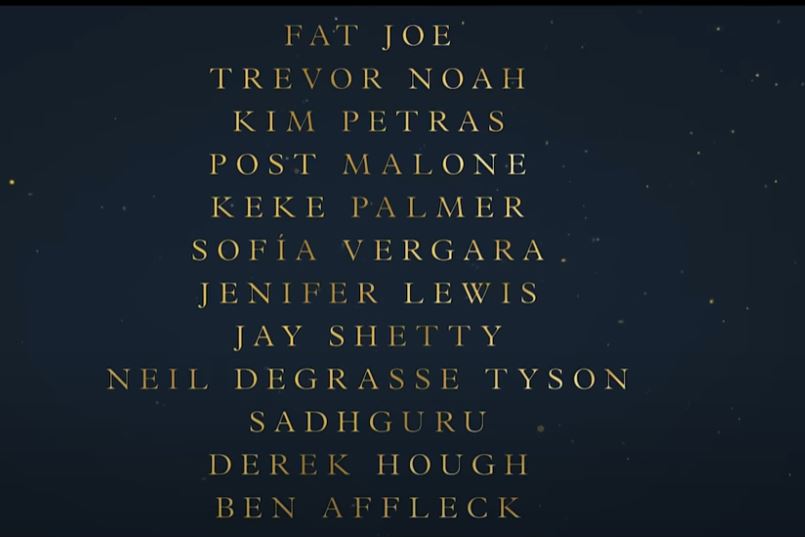यससँगै फिल्मको स्टार कास्टमा ‘बेन एफ्लेक’, ‘ट्रेभर नोआ’, ‘सोफिया भर्गारा’, ‘केके पाल्मर’, ‘निल डे ग्रेस टायसन’, ‘नील डी ग्रास टायसन र ‘पोस्ट मेलोन’ रहेको देख्न सकिन्छ। चलचित्रको ट्रेलर सार्वजनिक भए पनि त्यसमा सद्गुरु भने देखिँदैनन् । यस्तो अवस्थामा भारतीय फ्यानका लागि फिल्ममा केही महत्वपूर्ण सरप्राइज हुने विश्वास गरिएको भारतीय सञ्चारमाध्यमले जनाएका छन ।