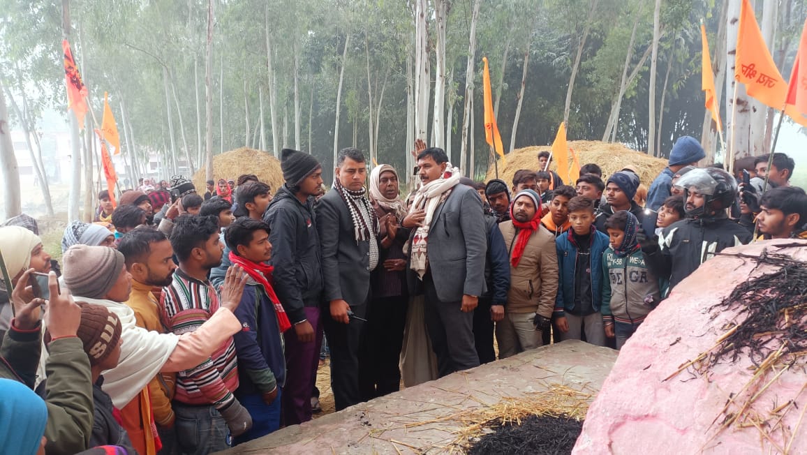 हातहातमा धार्मिक झण्डा बोकेका हिन्दू धर्मका समर्थकहरु जय श्रीराम को नारा लगाउँदै धार्मिक आस्था माथि कुठाराघात गर्ने अपराधी लाई अविलम्ब पक्राउ गर्न माग गरेका छन्। रौतहट क्षेत्र २ का सांसद किरण साहले जम्मा भएका हजारौं मानिस लाई शान्त रहन आग्रह गर्दै दोषीलाई पक्राउ गरी कारबाहीको दायरामा ल्याउन त्यहाँ पुगेका एसपी महेन्द्र कुमार श्रेष्ठ लाई अनुरोध सहित निर्देशन दिएका थिए।