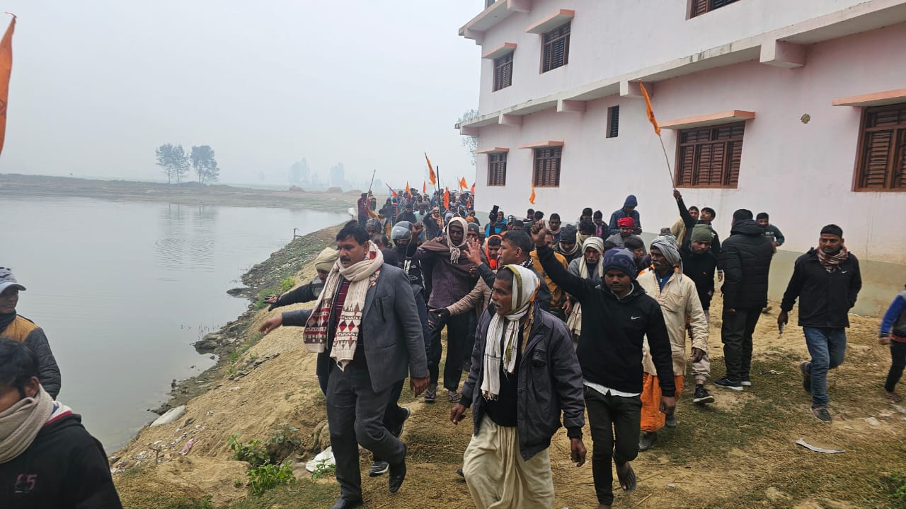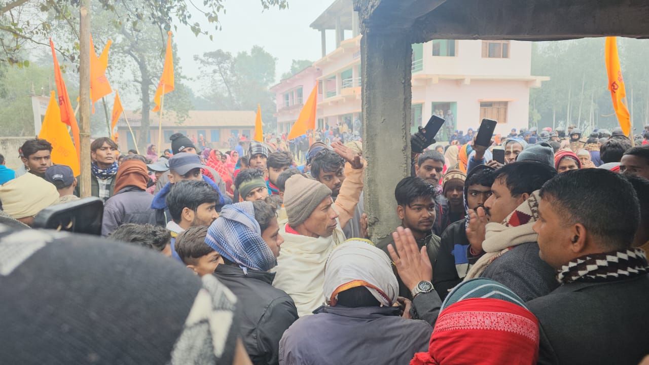 हातहातमा धार्मिक झण्डा बोकेका हिन्दू धर्मका समर्थकहरु जय श्रीराम को नारा लगाउँदै धार्मिक आस्था माथि कुठाराघात गर्ने अपराधी लाई अविलम्ब पक्राउ गर्न माग गरेका छन्। रौतहट क्षेत्र २ का सांसद किरण साहले जम्मा भएका हजारौं मानिस लाई शान्त रहन आग्रह गर्दै दोषीलाई पक्राउ गरी कारबाहीको दायरामा ल्याउन त्यहाँ पुगेका एसपी महेन्द्र कुमार श्रेष्ठ लाई अनुरोध सहित निर्देशन दिएका थिए।