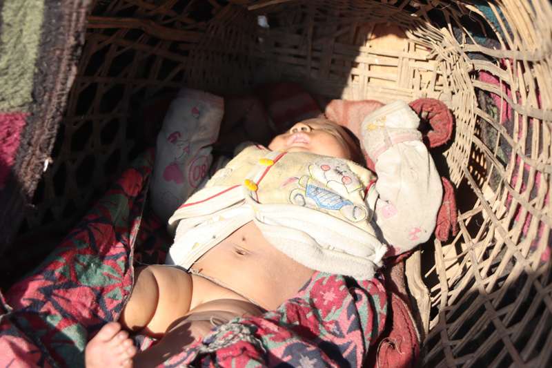सलबहादुर आफैँ पनि बिरामी छन् । उनका भाइबुहारी पनि ज्वरोले थलिएका छन्। रोग र शोक एकैपटक झेलिरहेको परिवारलाई पोषिलो आहार र उपचारको खाँचो छ। तर बिहान बेलुकाको दुई छाक जुटाउन समेत कठिन हुने स्थितिमा गुज्रिरहेको छ।‘घरमा दुई छाक टार्नै धौ–धौ छ। मजदुरी गरेर खान्थ्यौँ,’ सलबहादुरले भने, ‘अहिले रोग र भोकको विपत्ति एकैपटक आयो, ठुलाले जे खाए पनि हुनेरहेछ, यी कलिला बालबच्चालाई के खुवाएर बचाऔँ?’ घर खर्च जोहो गर्न घरमा श्रीमती र सुत्केरी बुहारीलाई छोडेर गत मंसिरमा सलबहादुर छोरालाई लिएर मजदुरी गर्न भारत पुगेका थिए।तर, दुई महिना नबित्दै घरमा बिपत्ति आइलाग्यो। सबै जना बिरामी परेको खबर पाएपछि उनीहरू घर फर्किए, तर घर आइपुग्दा बुहारीको श्वास रोकिसकेको थियो।