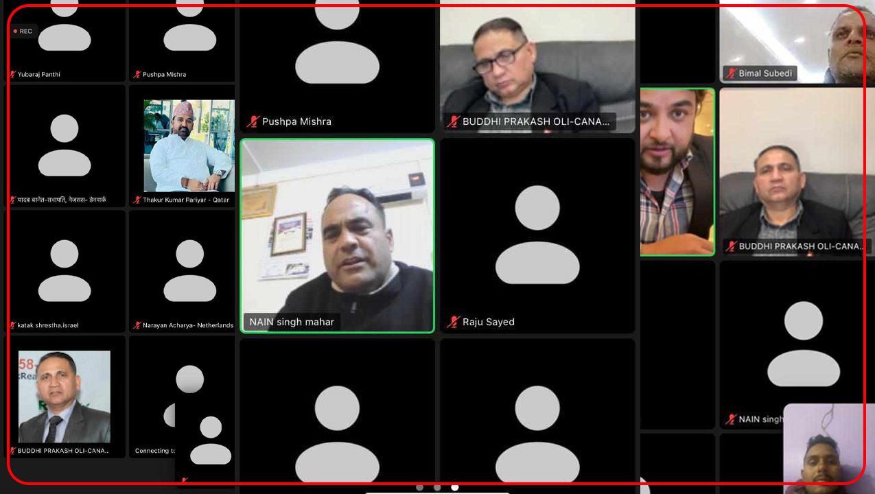 काठमाडौं। नेपाली कांग्रेसका केन्द्रीय सदस्य नैनसिंह महरले पार्टीका जनसम्पर्क समितिका पदाधिकारीसँग भर्चुअल संवाद गरेका छन्। आसन्न फागुन ७—१० मा हुने कांग्रेसको महासमिति बैठकमा प्रवासमा रहेका नेपालीहरुको विचार समेट्न नेता महरले संवाद गरेका हुन् ।
