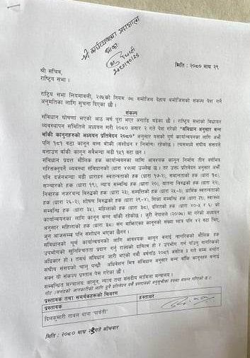 काठमाडौं । कानुन यथाशीघ्र निर्माणका लागि संकल्प प्रस्ताव दर्ता गरिएको छ । सोमबार संघीय संसद्ले बनाउन बाँकी १५१ भन्दा बढी कानुन यथाशीघ्र निर्माणका लागि संकल्प प्रस्ताव दर्ता गरिएको हो । संविधान कार्यान्वयनका लागि आवश्यक कानुन निर्माणका लागि भन्दै राष्ट्रिय सभामा संकल्प प्रस्ताव दर्ता गरिएको हो । दर्ता भएको प्रस्तावको प्रस्तावकमा राष्ट्रिय सभा सदस्य दिलकुमारी रावल थापा (पार्वती) र समर्थकमा आठजना सदस्यहरू रहेका छन् ।