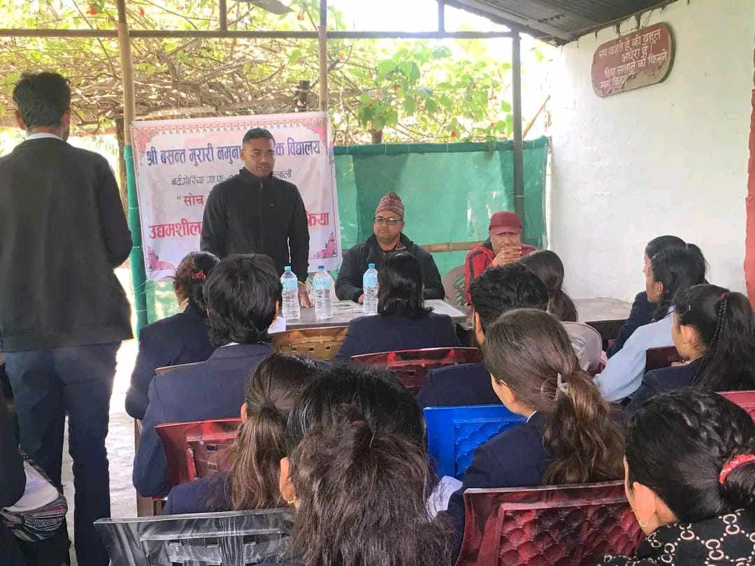 कैलाली । कैलालीको बर्दगोरिया गाउँपालिका वडा नम्बर १ मा रहेको बसन्त मुरारी नमुना माबिले एक दिन “साेच देखी उधमी सम्म कार्यक्रम” अन्तर्गत टिकापुर नगरपालिका वडा नम्बर ५ मा रहेको बनाना कटेजका संचालक कालु हमाल संग विद्यार्थीहरुले व्यवसाय संचालन गर्नका लागि सानो रकममा पनि संचालन गर्न सकिने रहेछ भने प्रेरणा प्राप्त गरेका छ्न्।