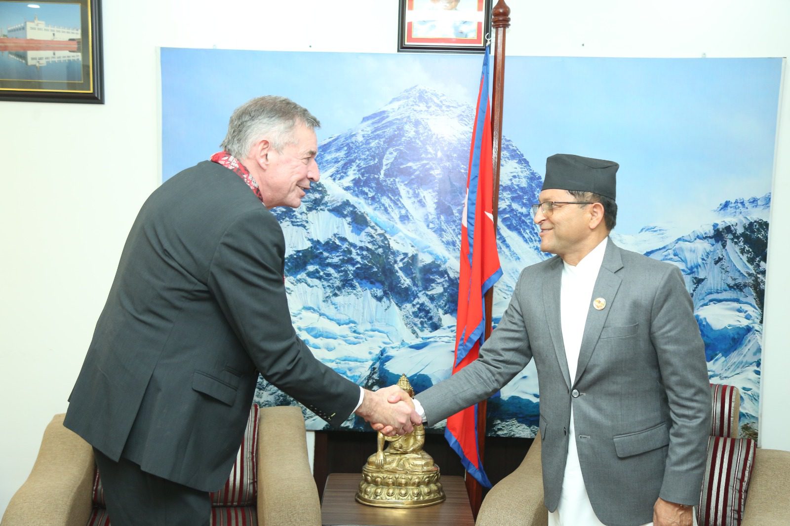 काठमाडौं । राष्ट्रिय सभाका अध्यक्ष गणेशप्रसाद तिमिल्सिनासँग इन्टर पारिस, पार्लियामेन्ट इन पार्टरनसिपका प्रमुख जोनाथन मफीले भेटवार्ता गरेका छन् । नेपाल भ्रमणका अवसरमा मंगलबार सिंहदरबारस्थित कार्यकक्षमा उनीहरुबीच शिष्टाचार भेट भएको हो । भेटका अवसरमा अध्यक्ष तिमिल्सिनाले संसद जनताका सवाल उठाउने र कानुन निर्माण गर्ने थलो भएकाले यसलाई प्रभावकारी बनाउन सक्दा प्रजातन्त्र बलियो बने बताए । उनले सरकारलाईं कसरी संसद र जनताप्रति उत्तरदायी बनाउन सकिन्छ भन्ने कुरामा इयुबाट सहयोग हुने अपेक्षा व्यक्त गरे ।