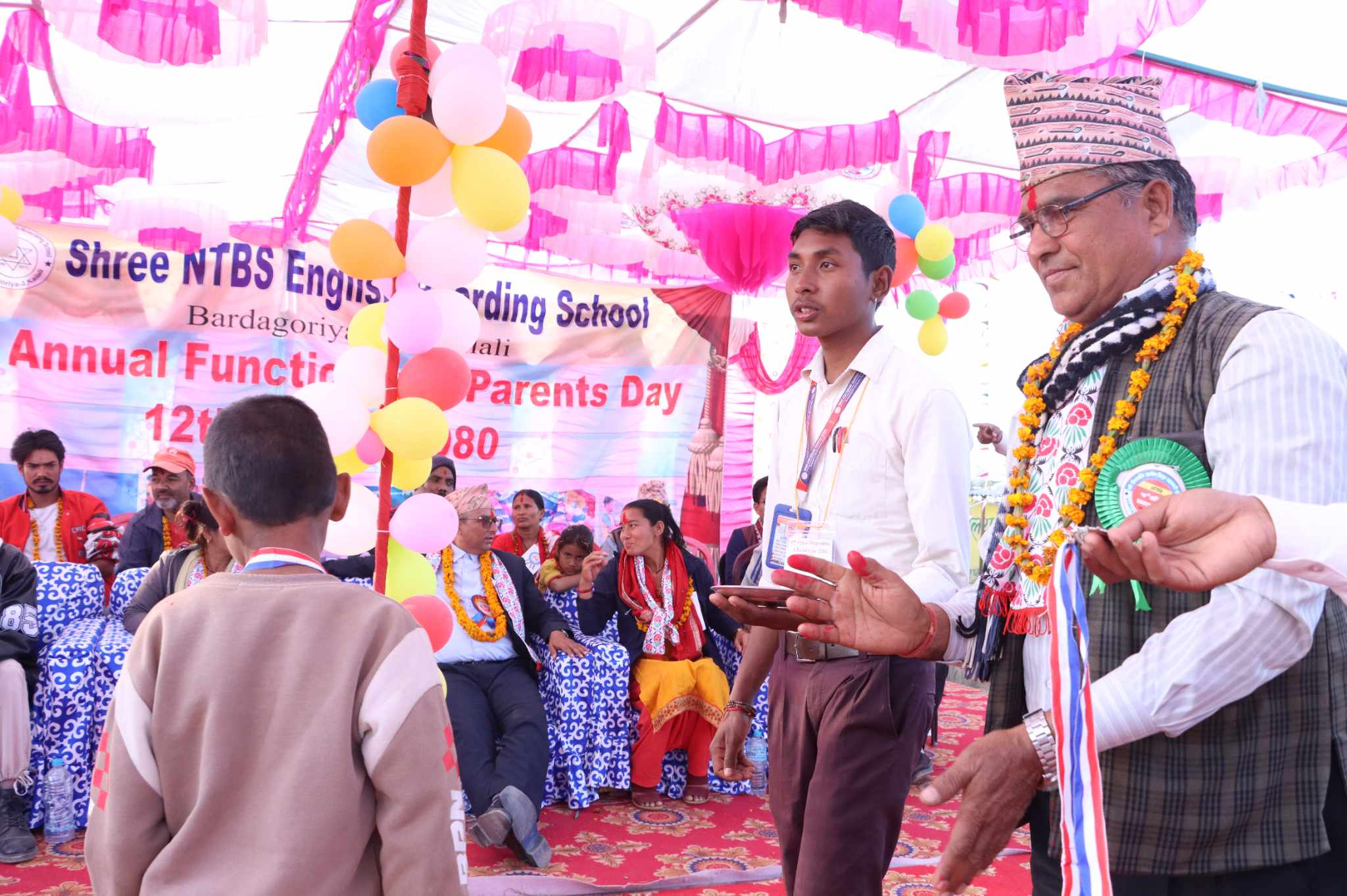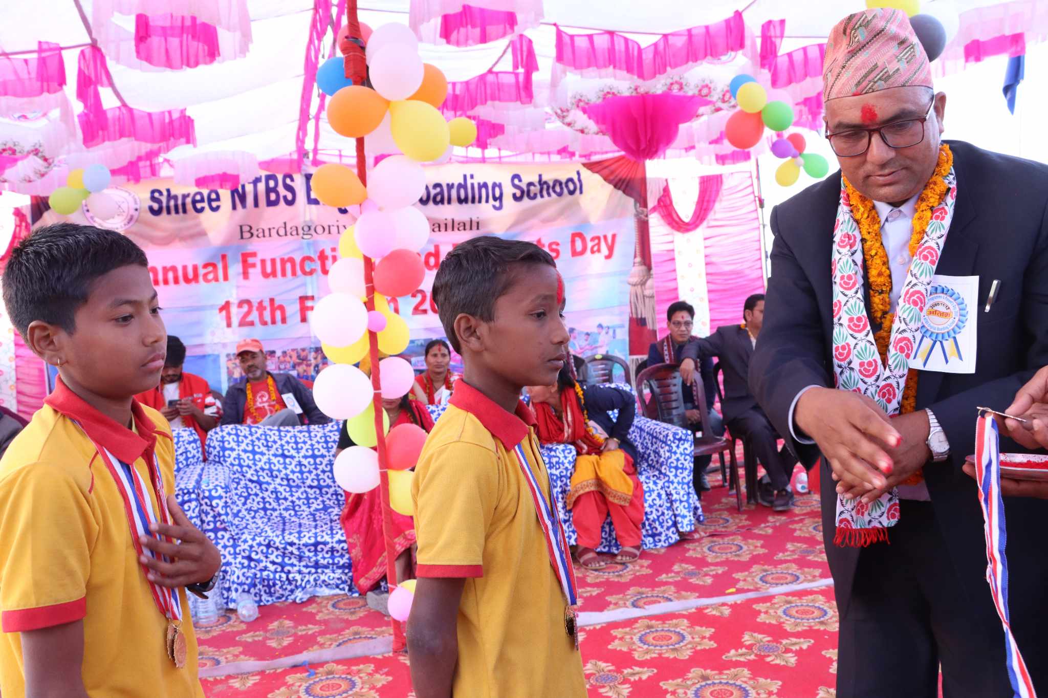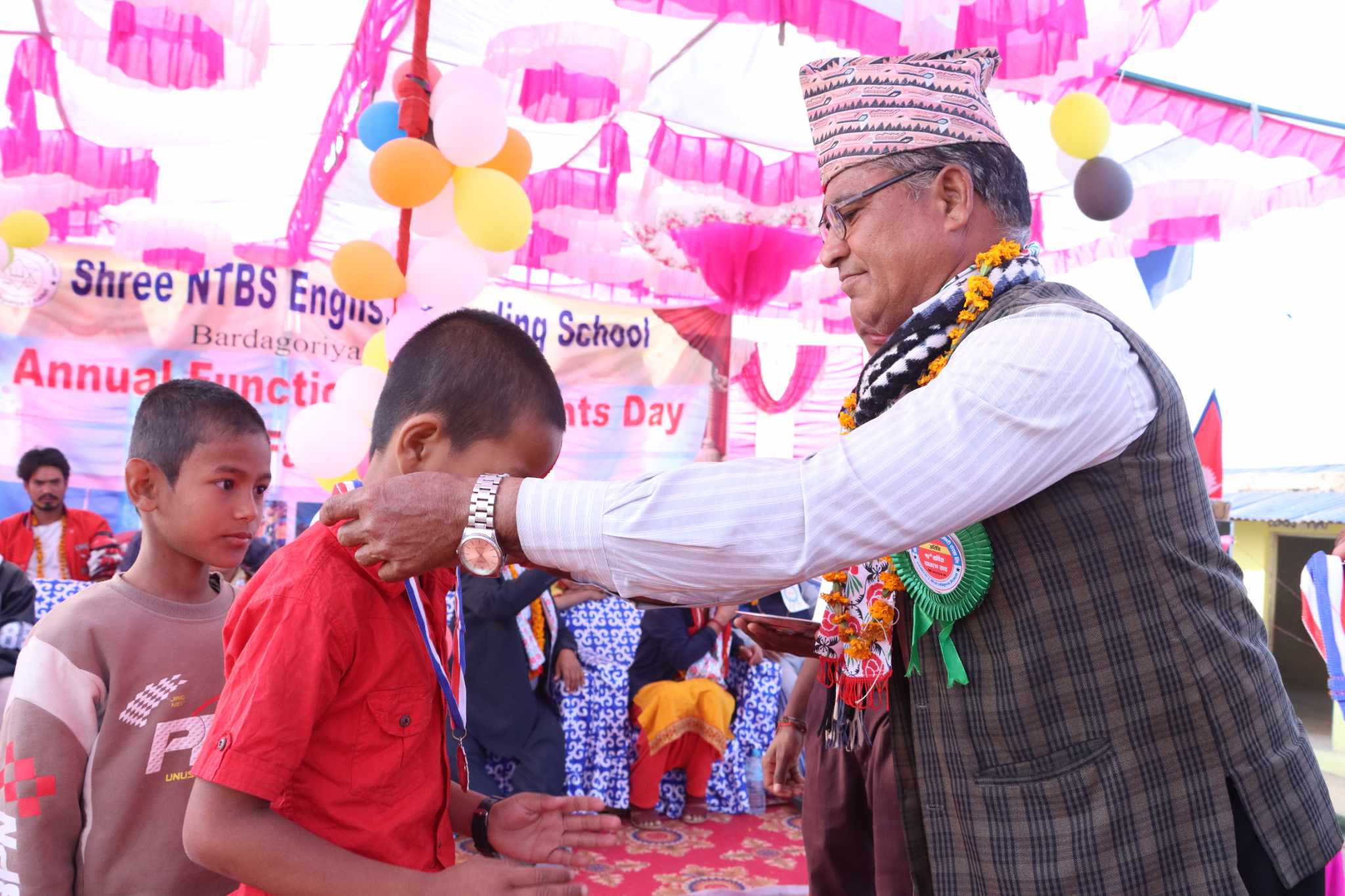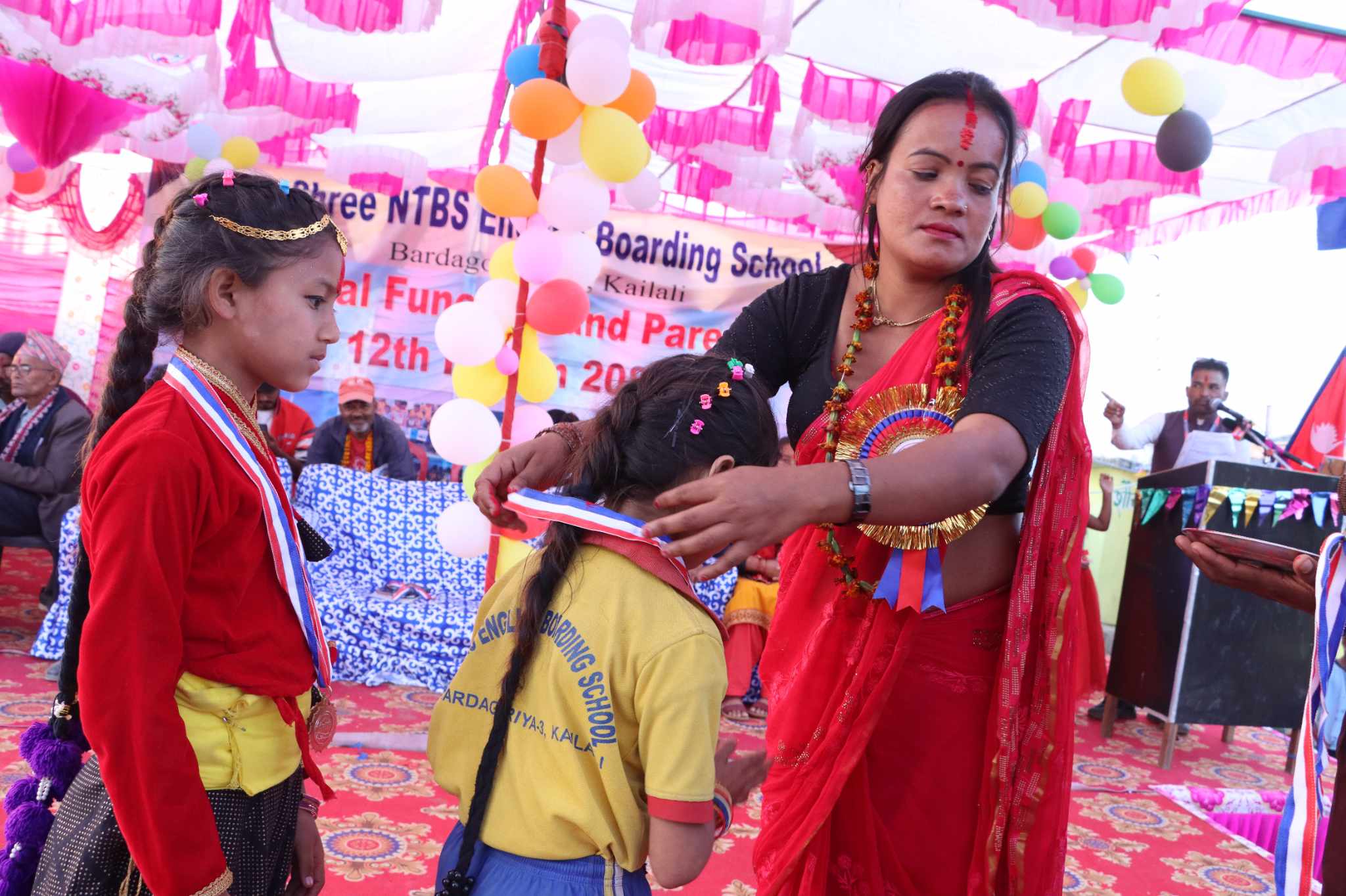 कैलाली । कैलालीको बर्दगोरिया गाउँपालिका वडा नं ३ मा रहेको एनटिबिएस इंग्लिश बोडिङ्ग स्कुलको दोस्रो वार्षिक उत्सव शनिबार सम्पन्न भएको छ। विद्यालयको प्राङगणमा आयोजित वार्षिक उत्सव कार्यक्रममा विभिन्न कक्षामा अध्यनरत विद्यार्थीहरुले नाच , नृत्य, विज्ञान प्रविधि,अभिनय लगायतका विभिन्न कलाहरू देखाएका थिए I विभिन्न विधामा प्रथम द्वितीय र तृतीय हुने विद्यार्थी लाई पुरुस्कार वितरण गरिएको थियो ।