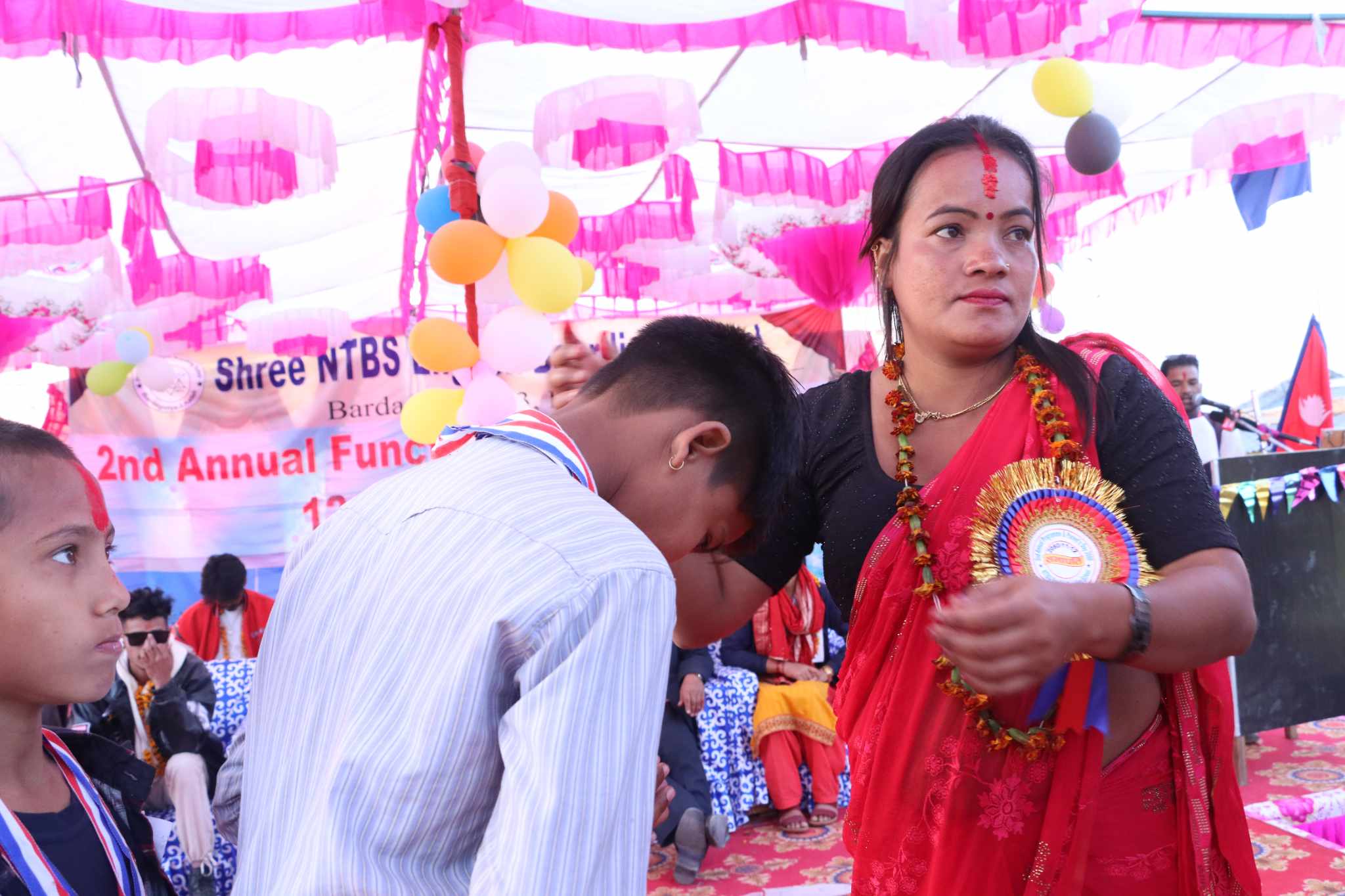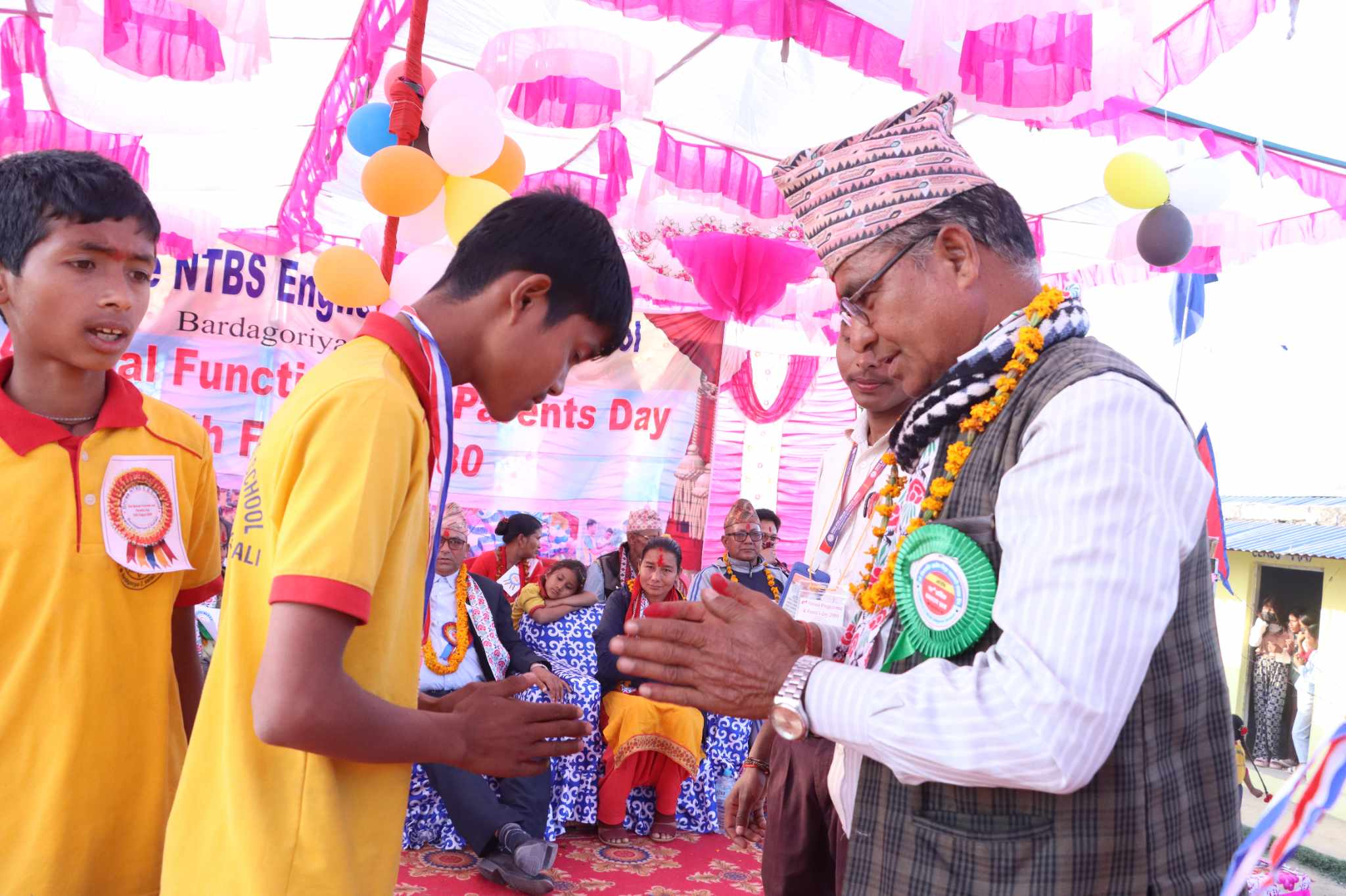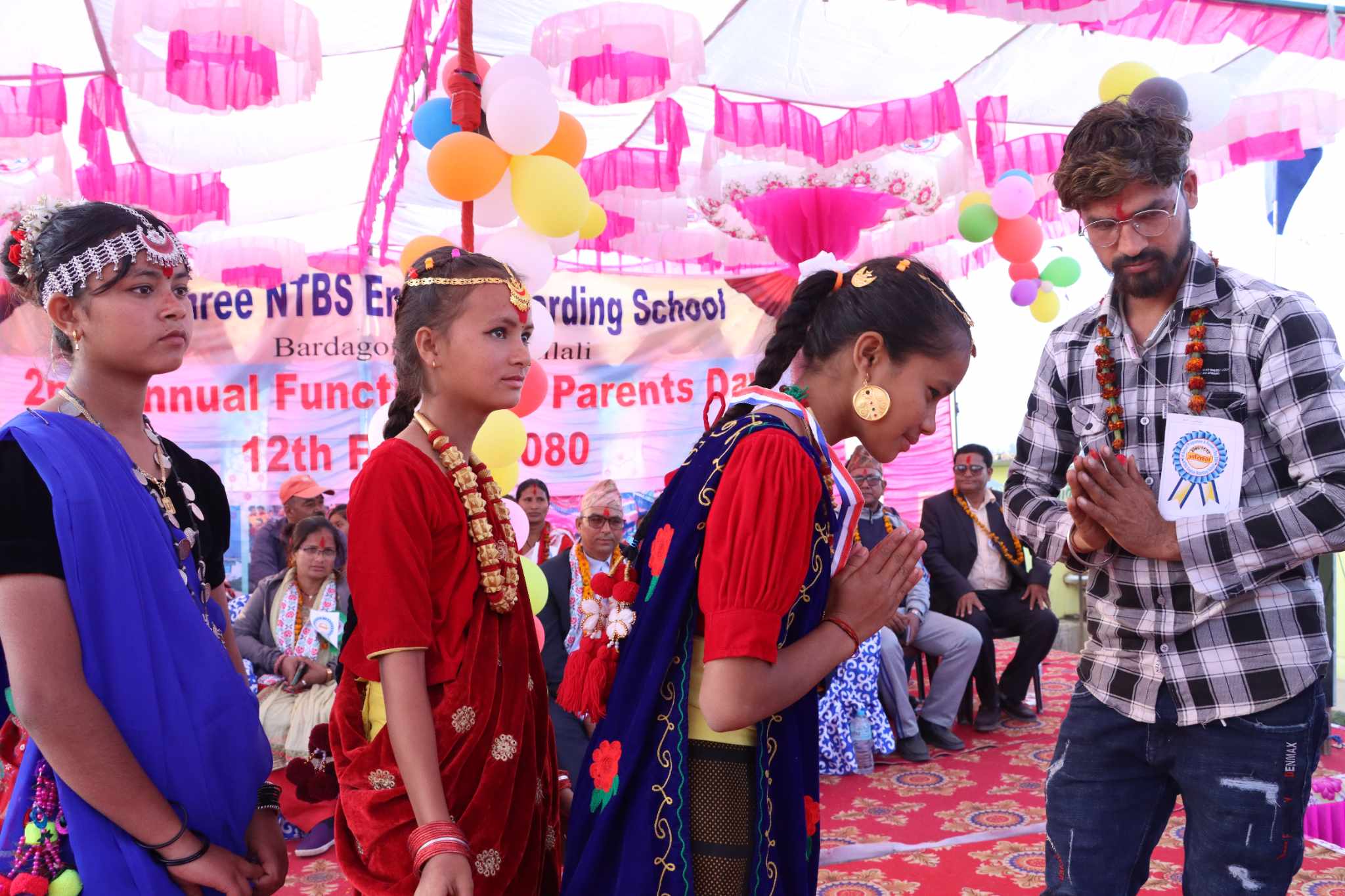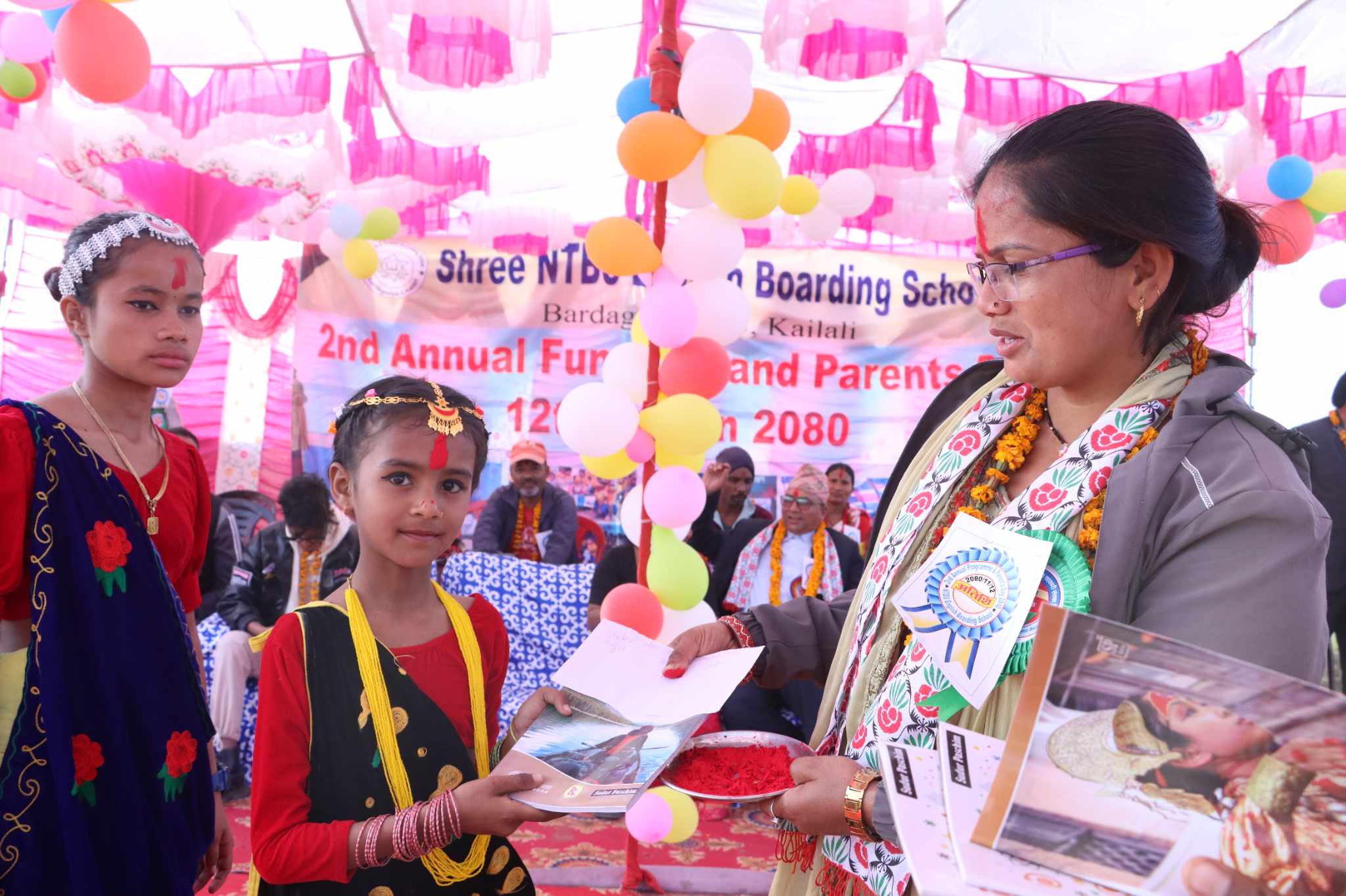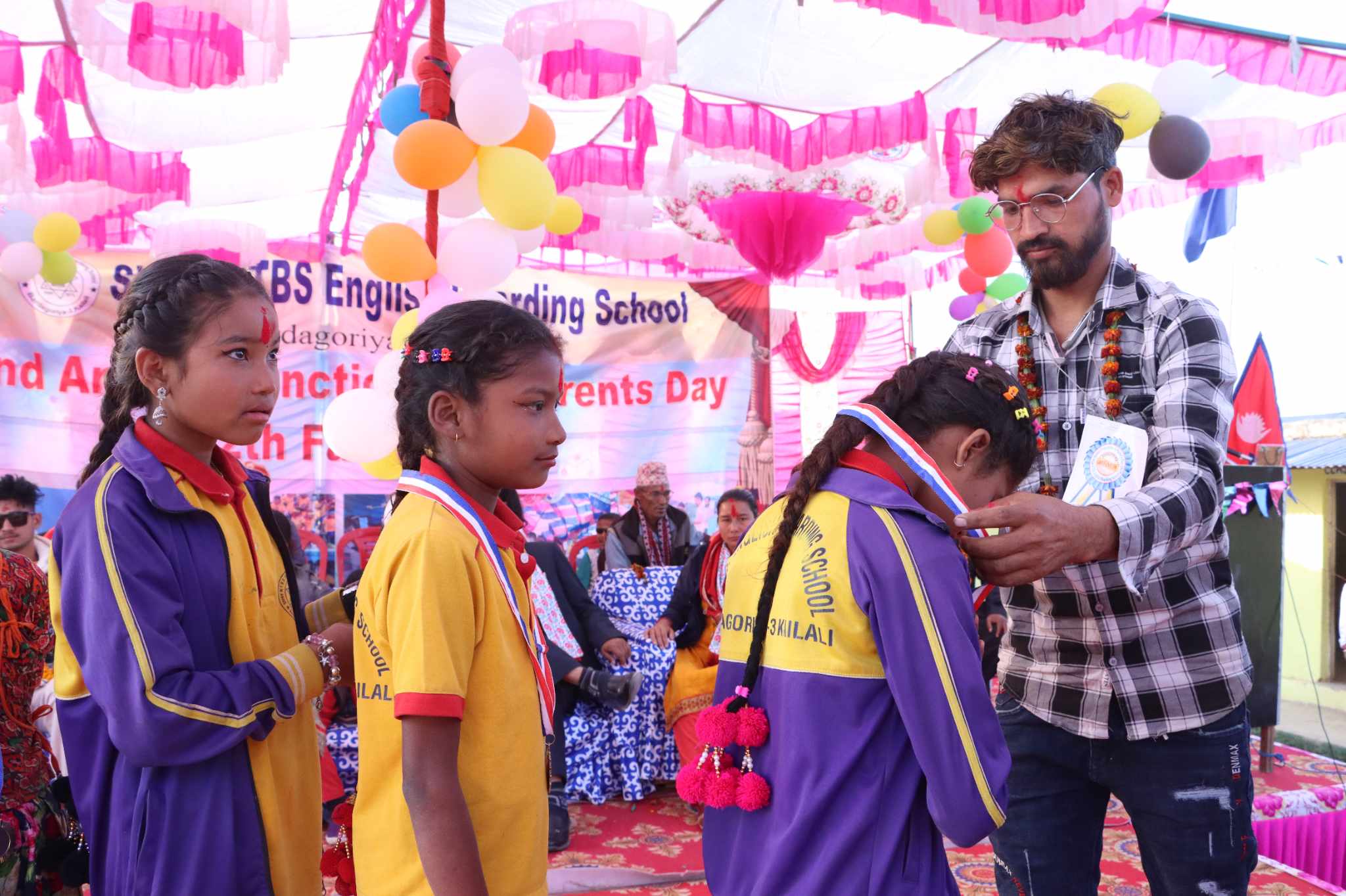 कैलाली । कैलालीको बर्दगोरिया गाउँपालिका वडा नं ३ मा रहेको एनटिबिएस इंग्लिश बोडिङ्ग स्कुलको दोस्रो वार्षिक उत्सव शनिबार सम्पन्न भएको छ। विद्यालयको प्राङगणमा आयोजित वार्षिक उत्सव कार्यक्रममा विभिन्न कक्षामा अध्यनरत विद्यार्थीहरुले नाच , नृत्य, विज्ञान प्रविधि,अभिनय लगायतका विभिन्न कलाहरू देखाएका थिए I विभिन्न विधामा प्रथम द्वितीय र तृतीय हुने विद्यार्थी लाई पुरुस्कार वितरण गरिएको थियो ।
