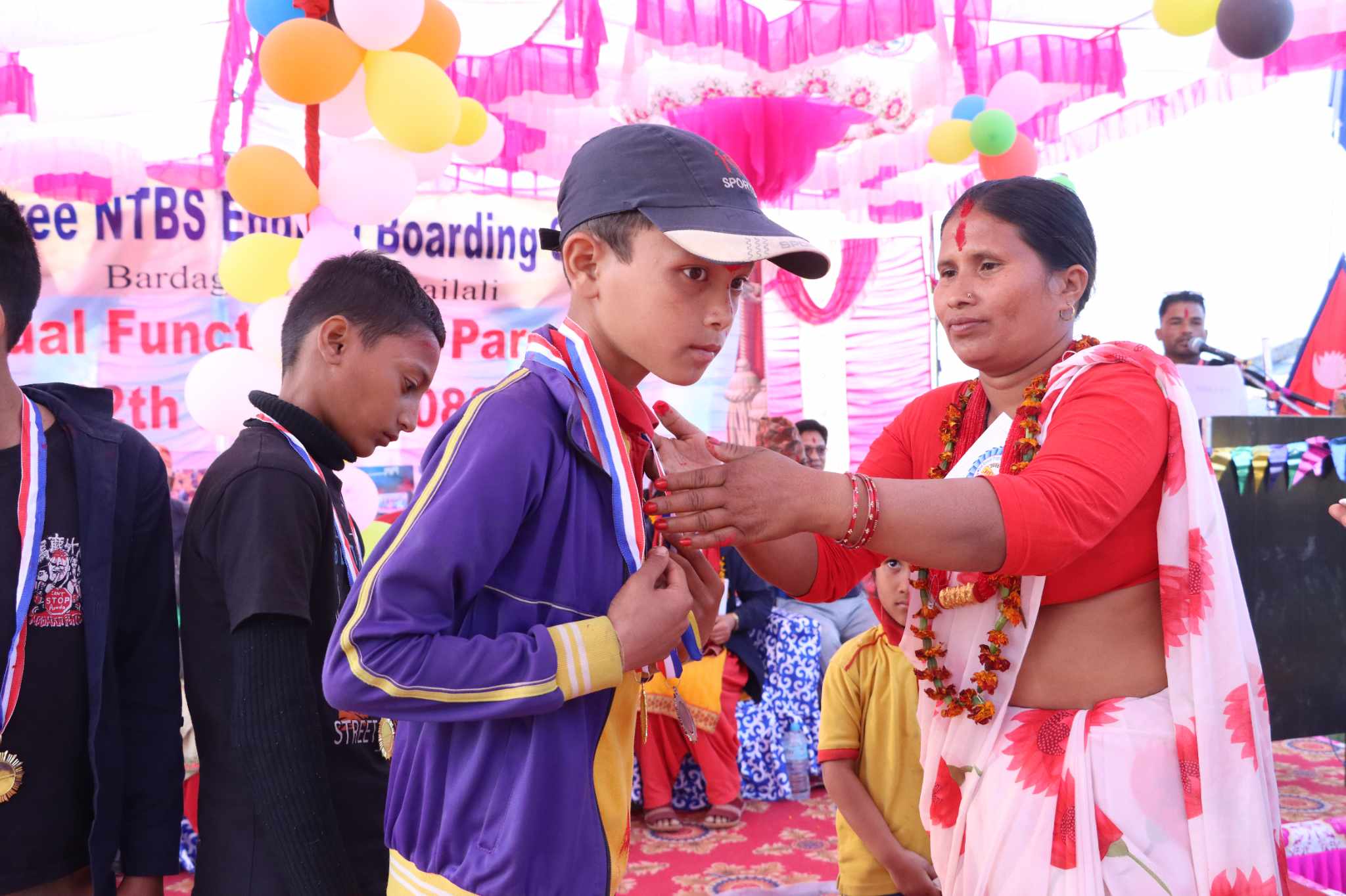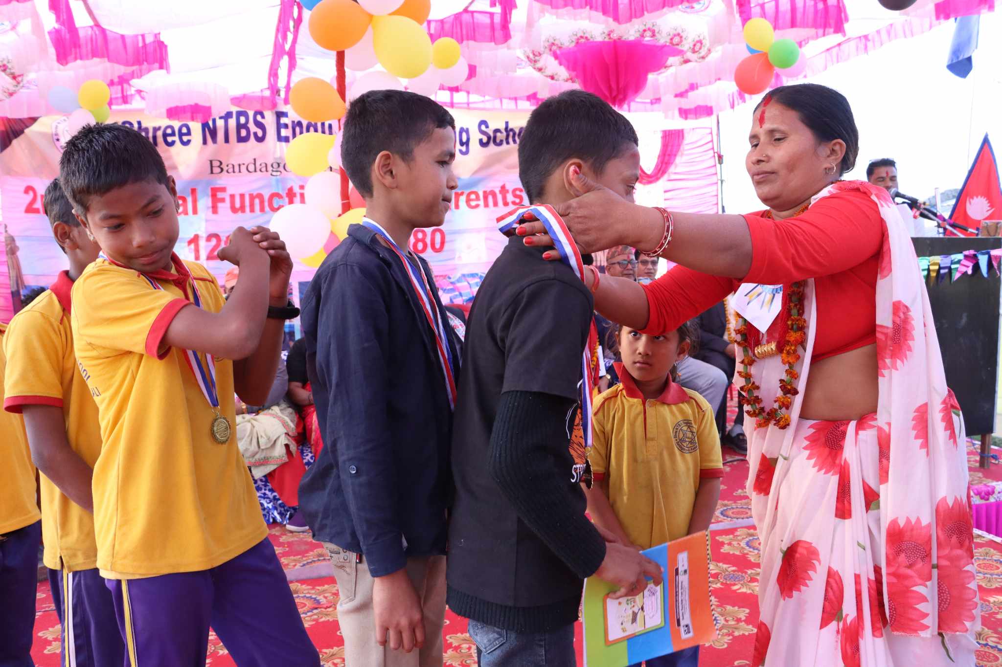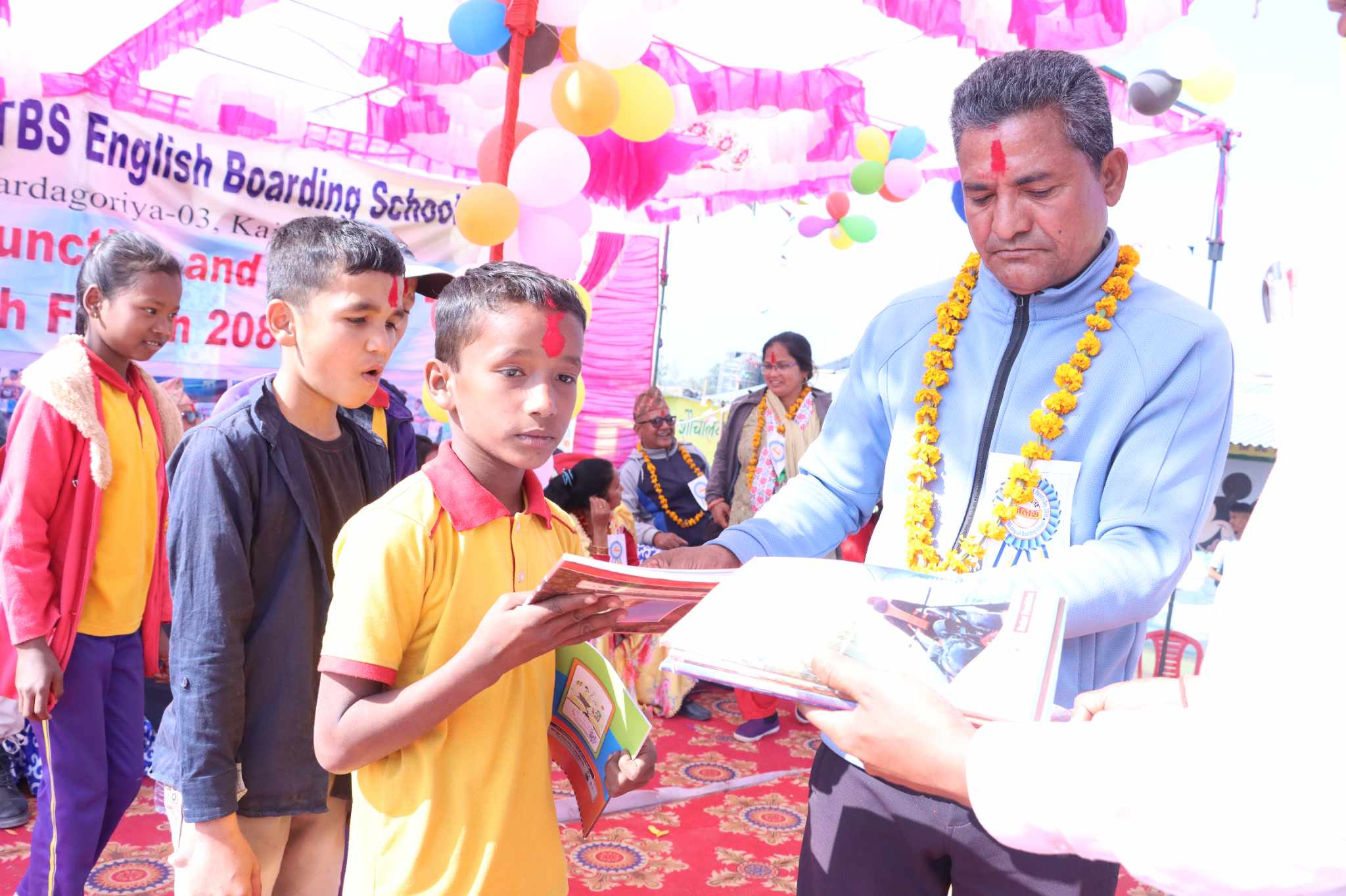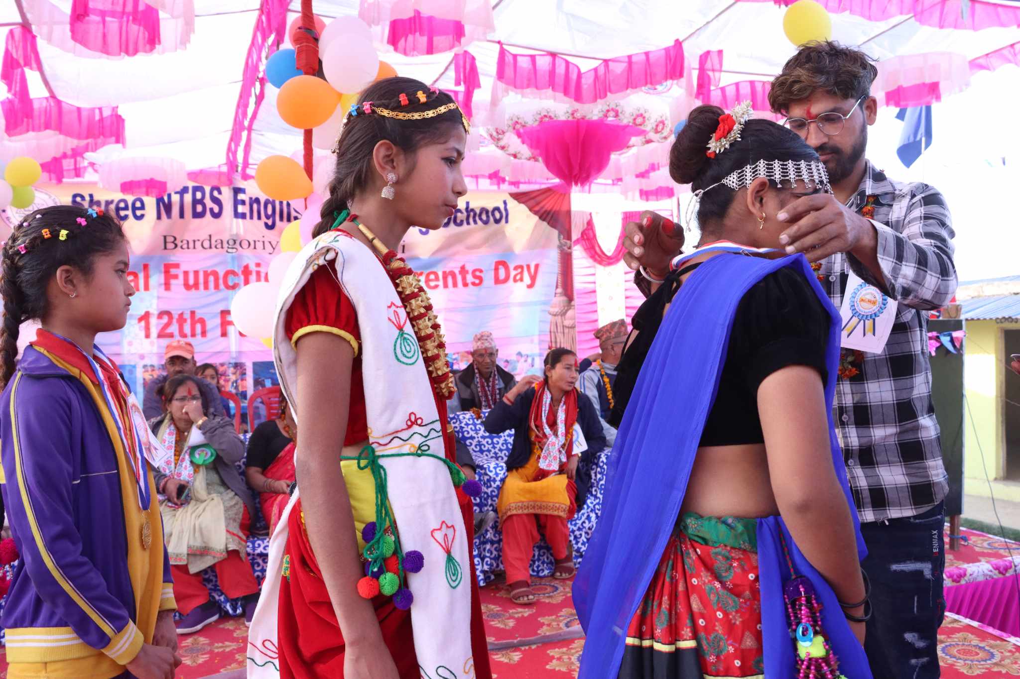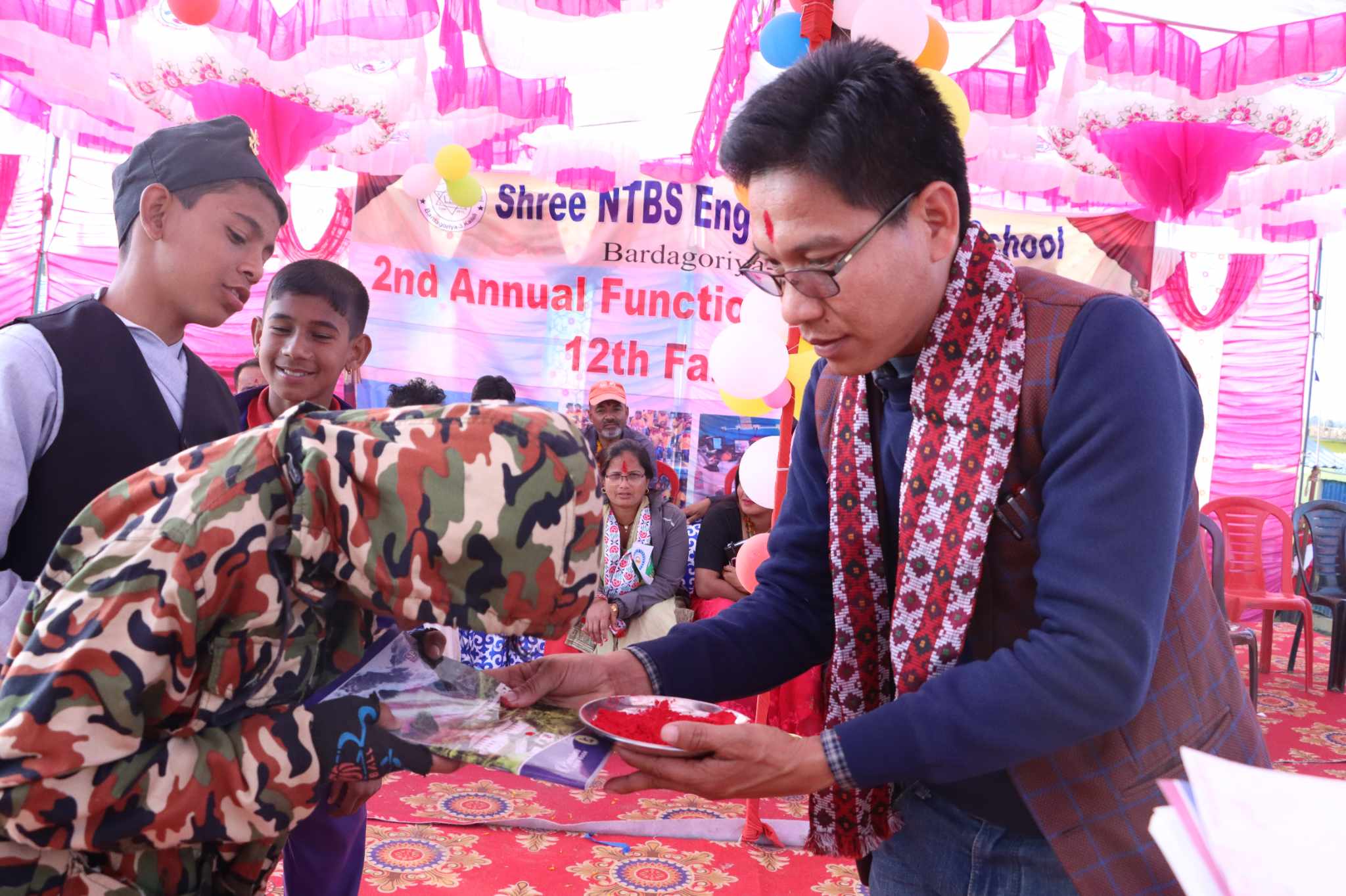 कैलाली । कैलालीको बर्दगोरिया गाउँपालिका वडा नं ३ मा रहेको एनटिबिएस इंग्लिश बोडिङ्ग स्कुलको दोस्रो वार्षिक उत्सव शनिबार सम्पन्न भएको छ। विद्यालयको प्राङगणमा आयोजित वार्षिक उत्सव कार्यक्रममा विभिन्न कक्षामा अध्यनरत विद्यार्थीहरुले नाच , नृत्य, विज्ञान प्रविधि,अभिनय लगायतका विभिन्न कलाहरू देखाएका थिए I विभिन्न विधामा प्रथम द्वितीय र तृतीय हुने विद्यार्थी लाई पुरुस्कार वितरण गरिएको थियो ।