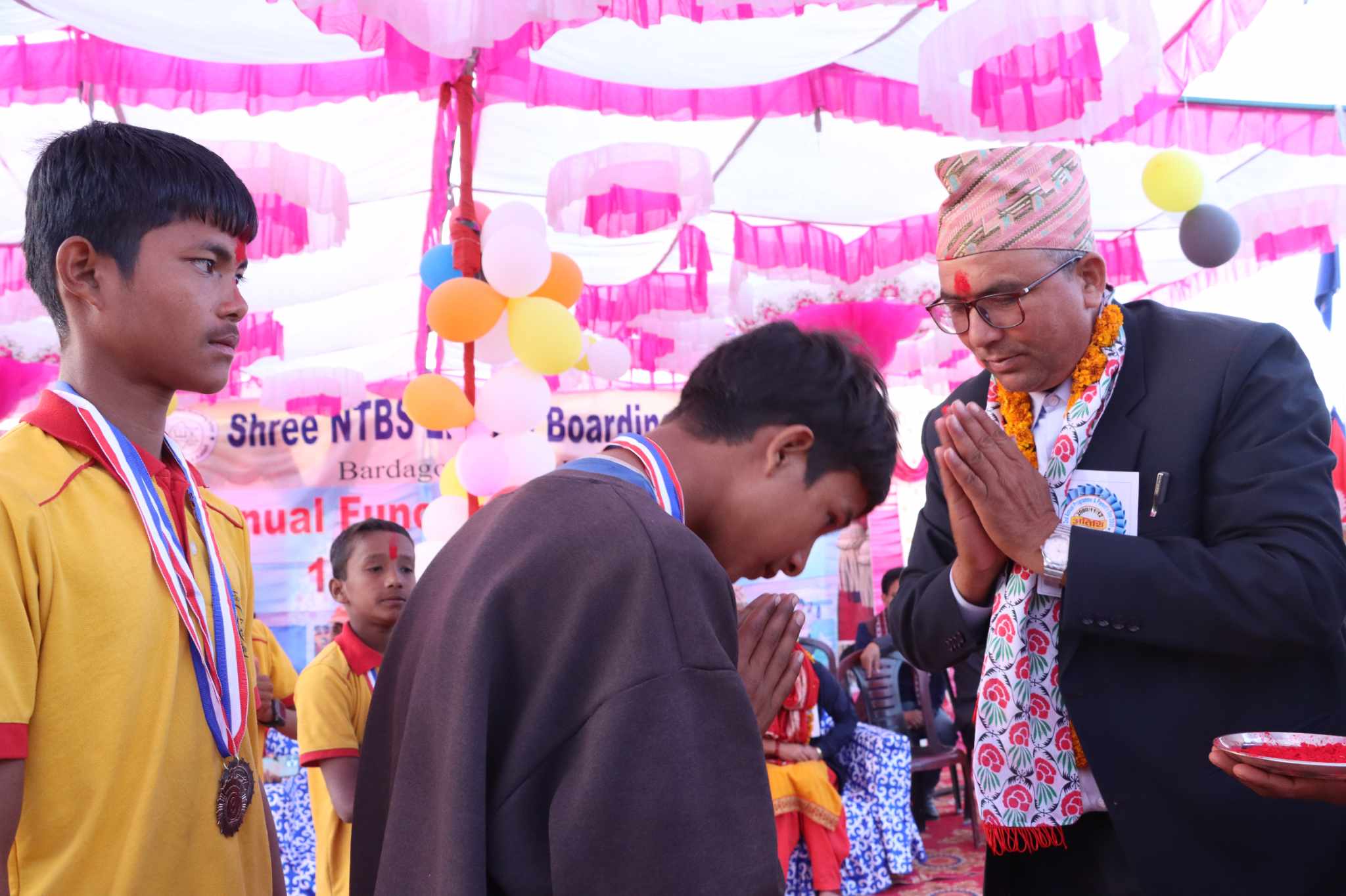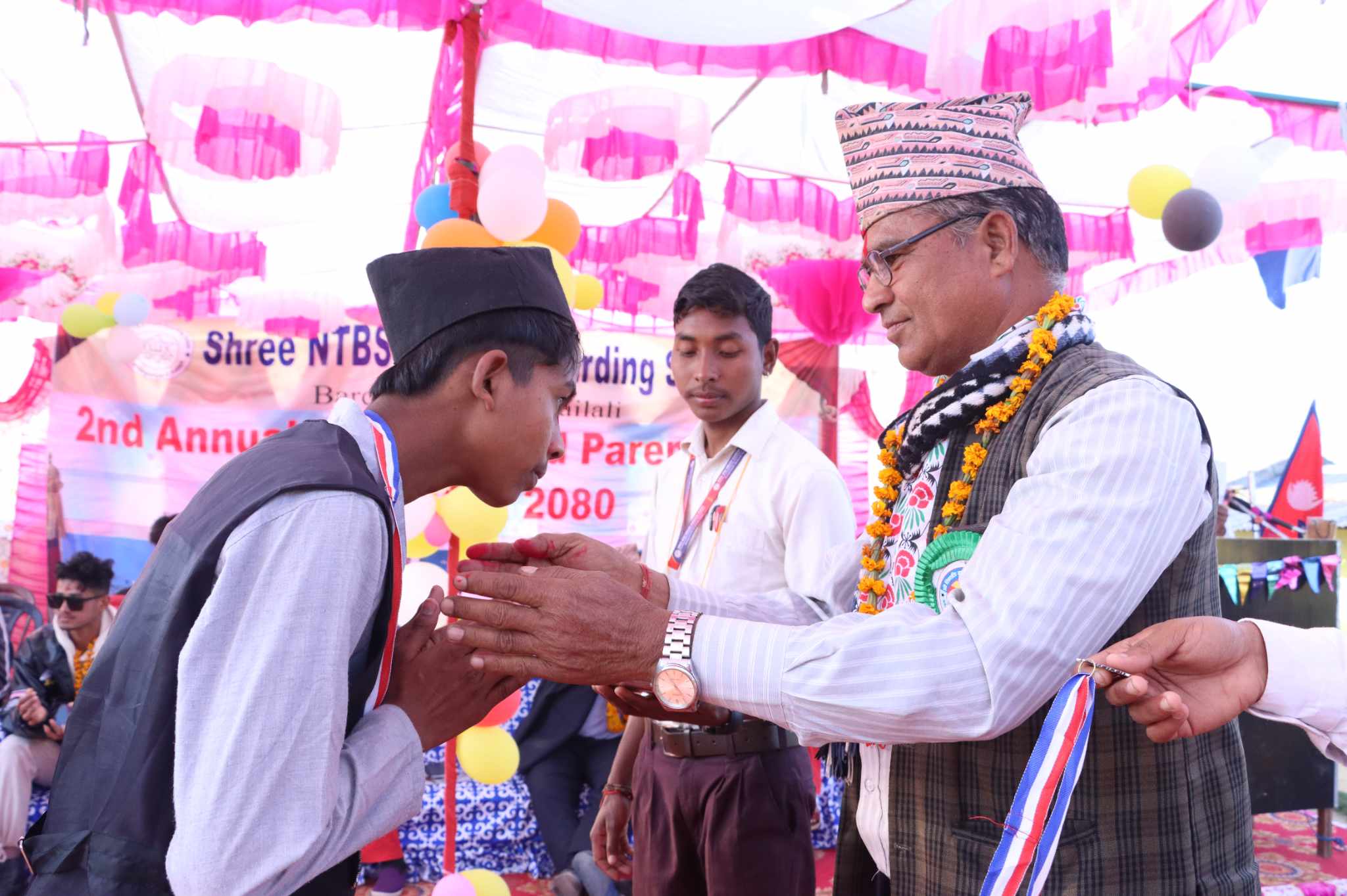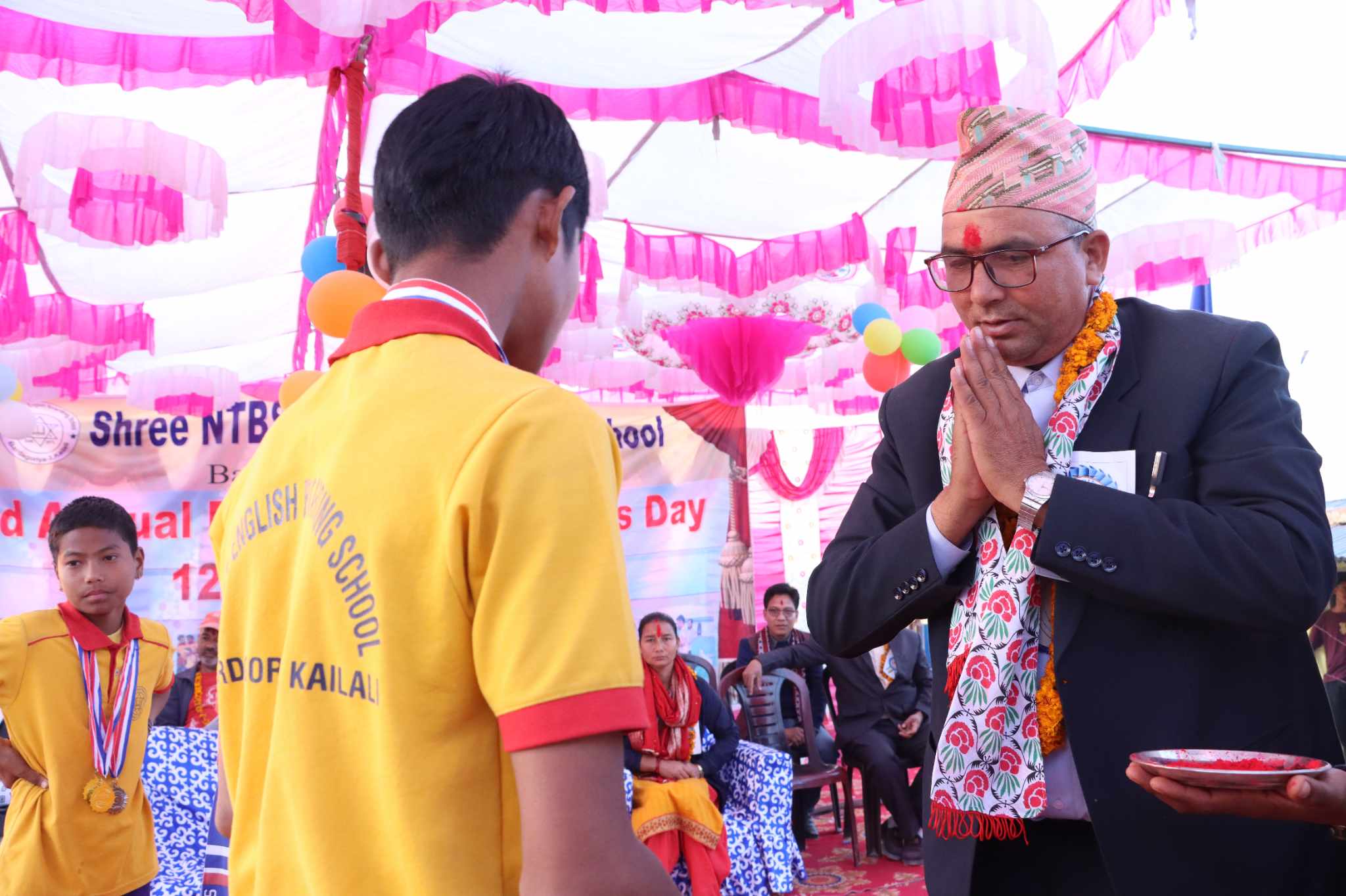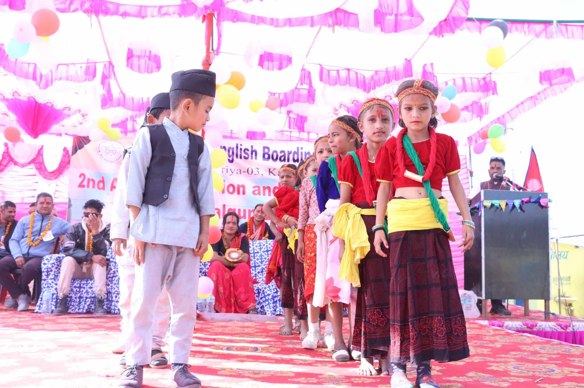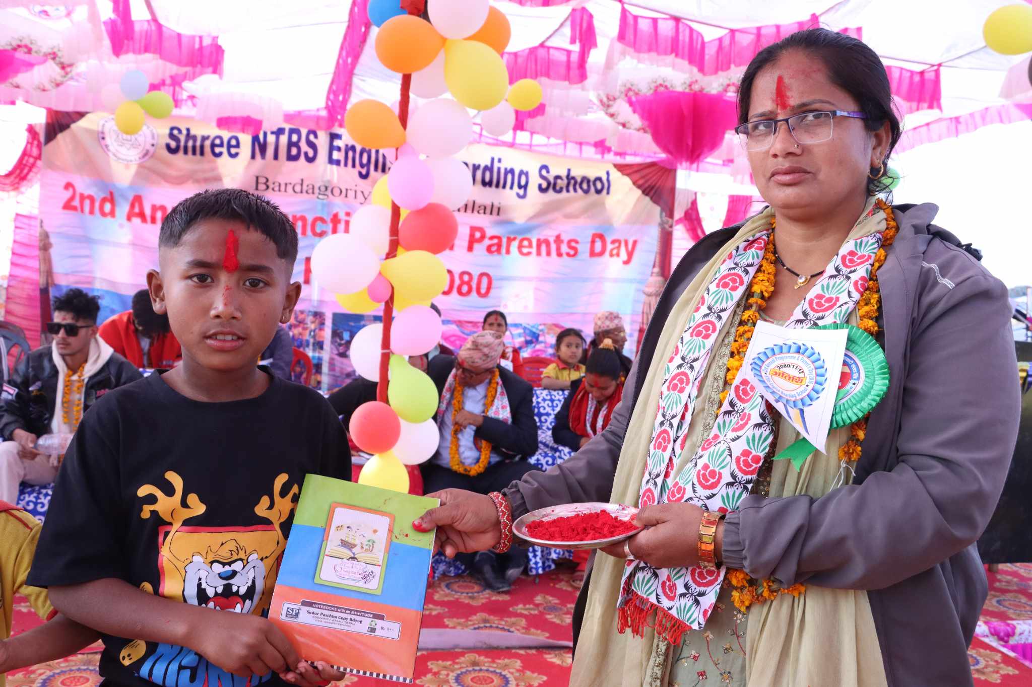 कैलाली । कैलालीको बर्दगोरिया गाउँपालिका वडा नं ३ मा रहेको एनटिबिएस इंग्लिश बोडिङ्ग स्कुलको दोस्रो वार्षिक उत्सव शनिबार सम्पन्न भएको छ। विद्यालयको प्राङगणमा आयोजित वार्षिक उत्सव कार्यक्रममा विभिन्न कक्षामा अध्यनरत विद्यार्थीहरुले नाच , नृत्य, विज्ञान प्रविधि,अभिनय लगायतका विभिन्न कलाहरू देखाएका थिए I विभिन्न विधामा प्रथम द्वितीय र तृतीय हुने विद्यार्थी लाई पुरुस्कार वितरण गरिएको थियो ।