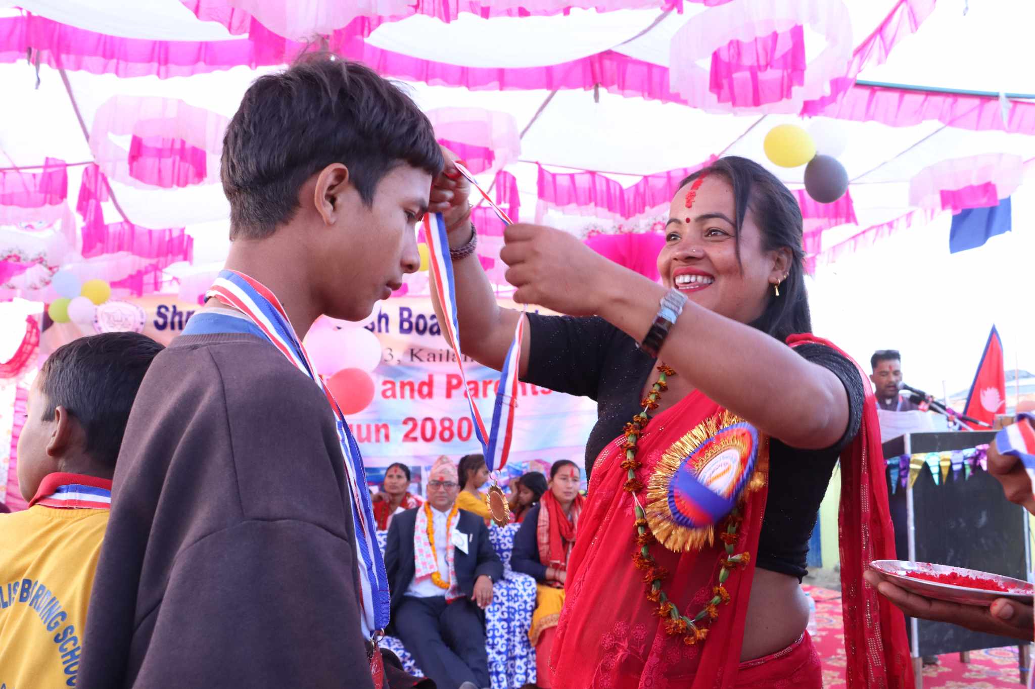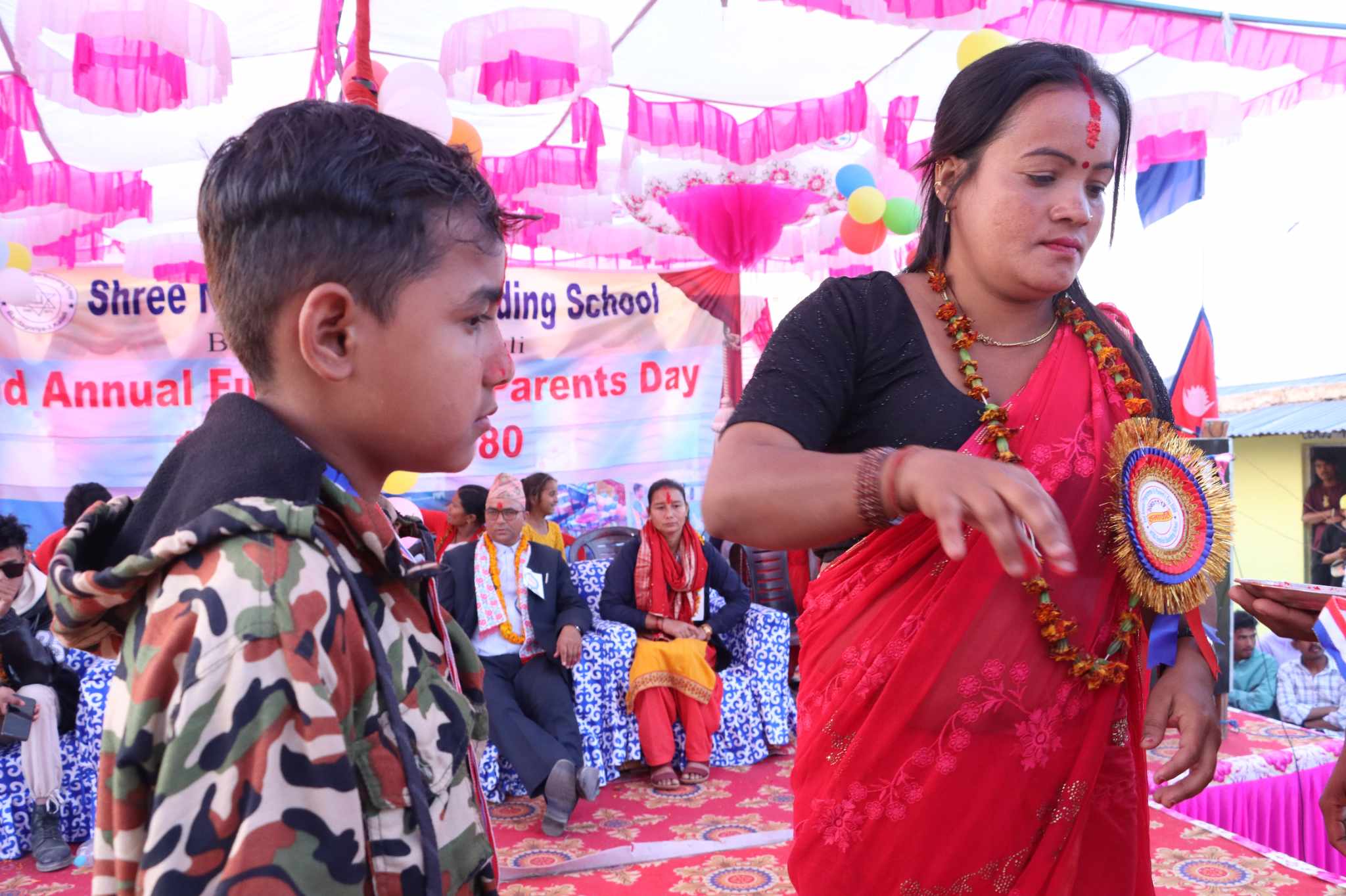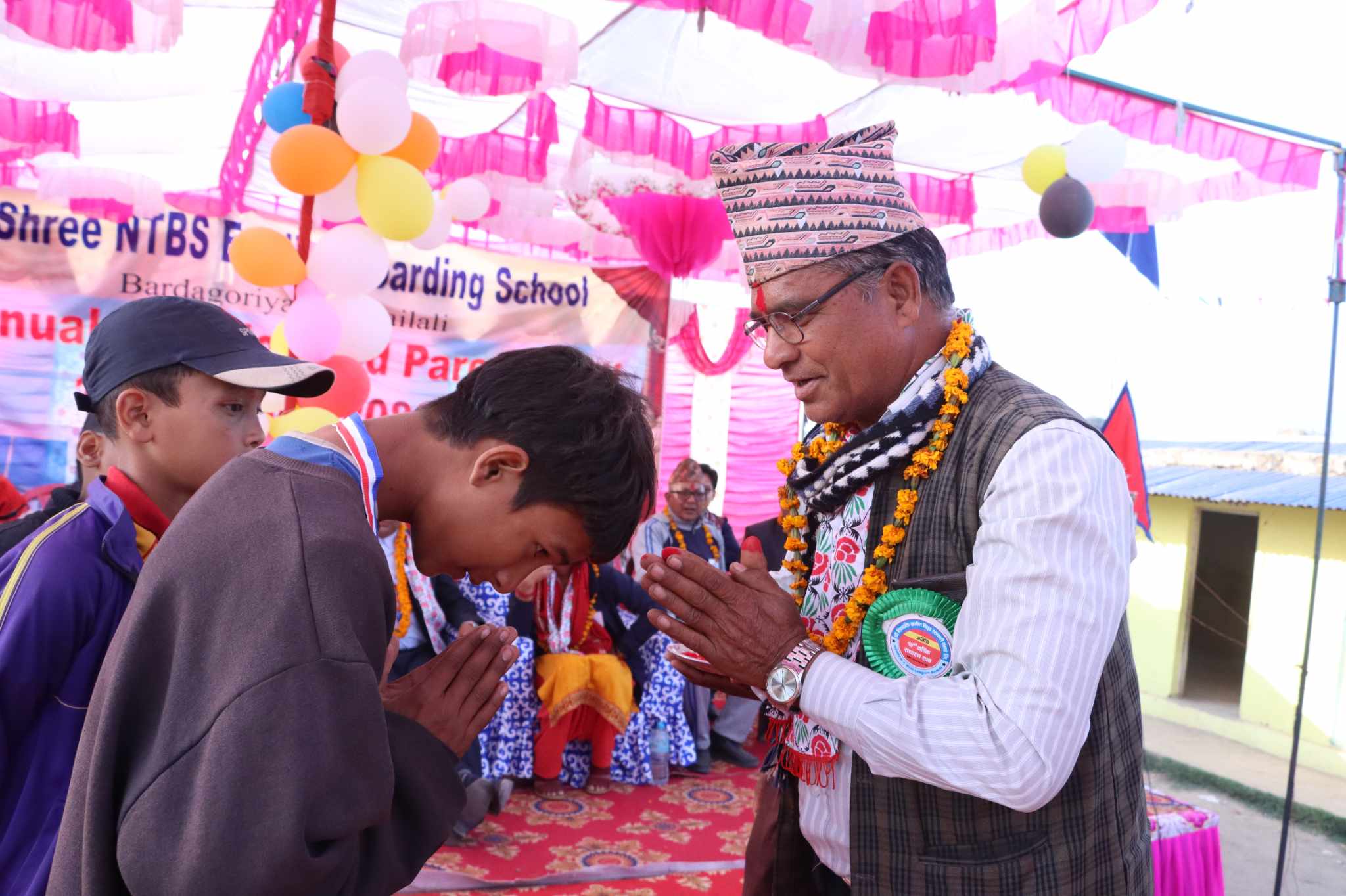 विद्यालय व्यवस्थापन समितिका अध्यक्ष कोकिला खत्रीको सभापतित्वमा सञ्चालन भएको कार्यक्रममा बर्दगोरिया गाउँपालिकाका अध्यक्ष कर्ण बहादुर कुँवरको प्रमुख आतिथ्य रहनु भएकाको कार्यक्रममा विशिस्ट आतिथ्य बर्दगोरिया गाउँपालिका वडा नं ३ का वडा अध्यक्ष मनऋषि आचार्य विशिष्ट अतिथि रहनु भएको थियो । कार्यक्रममा बोल्दै प्रमुख अतिथि कुवँरले जानेको कुरा व्यवहारमा उतार्न सके बोडिङ्ग स्कुलको स्तर स्वतः वृद्धि हुने बताउनु भयो। बाल विकासमा विशेष ध्यान दिन नसकेको कारण राम्रो जनशक्ति उत्पादन हुन नसकेको बताउनु भयो ।
