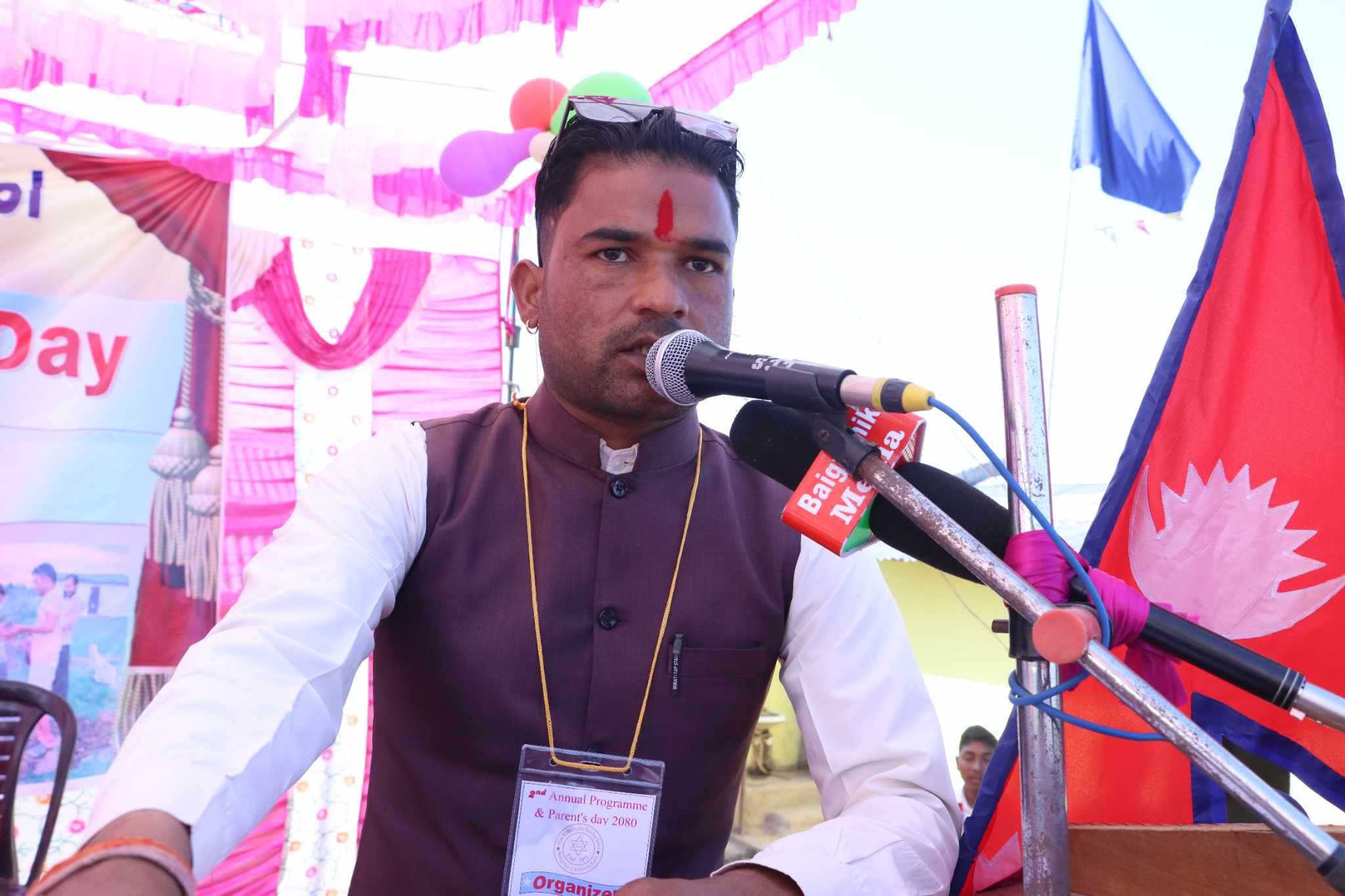 विद्यार्थीको मनोविज्ञान अनुसारको पढाई गर्नु पर्ने समय आएको बताउदै विद्यार्थीको मनोभावना अनुसारको शिक्षा नै आजको अनावश्यक्ता रहेको बताउनुभयो। शिक्षा मन्त्रालयले शिक्षा संग सम्बन्धीत सबै नियम कानुन तयार पारेको तर हरेक सामुदायीक र बोडिङ्ग स्कुल विद्यालयले बुझेर पनि व्यवहारमा लागु नगरेको कारण नेपालका सामुदायीक र बोडिङ्ग स्कुल विद्यालयको अवस्था दिन प्रतिदिन बिग्रँदो अवस्थामा पुगेको भन्दै तत्काल त्यसपक्षमा ध्यान दिन विद्यालयलाई अनुरोध गर्नु भयो। त्यसैगरी कार्यक्रममा बोल्दै बिशिस्ट आतिथी वडा नम्बर ३ का वडा अध्यक्ष मनऋषि आचार्यले वार्षिक उत्सव समारोहलाई सम्बोधन गर्दै वडा अध्यक्ष आचार्यले उत्कृष्ट विद्यालयको रुपमा स्थापित हुन सकोस् भनि शुभकामना दिनु भयो। स्थापना काल देखि केही समय सम्म विद्यालयमा भौतिक संरचना नहुंदा भुइँमा बोरा बिच्छाएर बढेको बाध्यता आजको दिनमा नरहेकोले अब अन्य कुरा लाई बिर्सेर गुणस्तरीय शिक्षामा नै केन्द्रित हुन आवश्यक रहेको बताउनुभयो।