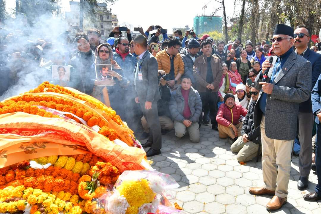 नेकपा। एमालेका अध्भयक्ष केपी शर्मा ओली भजन शिरोमणी भक्तराज आचार्यलाई श्रद्वाञ्जली अर्पण गर्न पुगेका छन्।