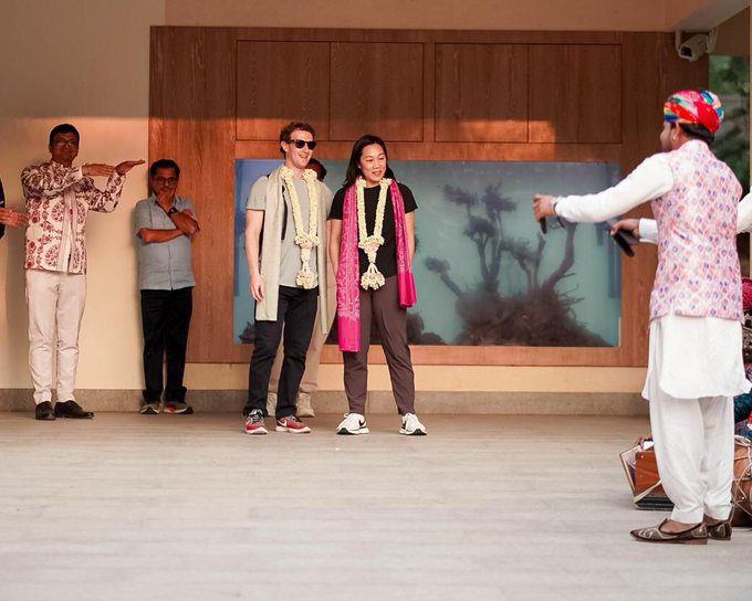 नयाँदिल्ली । अअनन्त अम्बानी र राधिका मर्चेन्टको प्रि–वेडिङ समारोहमा सहभागी हुने सेलिब्रेटीहरूको सूची लामो देखिएको छ। फेसबुकका संस्थापक मार्क जुकरबर्ग पनि सो बिबाह समारोहमा सहभागी हुनका लागि भारतको जामनगर आइपुगेका छन् । उनी आफ्नी पत्नी प्रिसेलिया चानसँग जामनगर पुगेका थिए जहाँ उनलाई विमानस्थलमा गुजराती परम्परागत शैलीमा स्वागत गरिएको थियो।