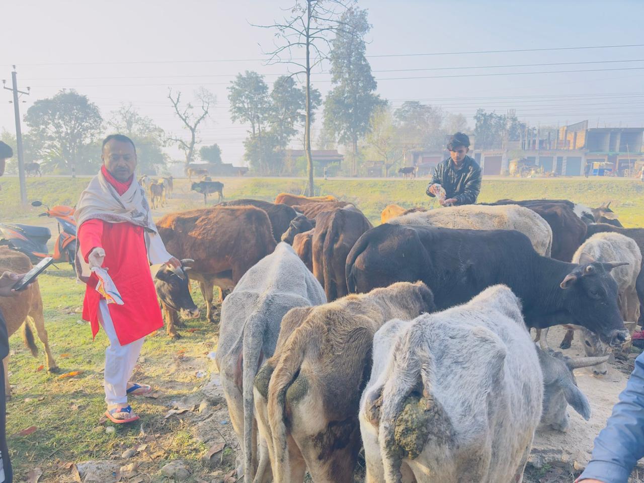 कैलाली । कैलालीको घोडाघोडी नगरपालिका वडा नम्बर ९ रामशिखरझाला निवासी पर्यटन व्यवसायी डबल शाहले आफनो जन्मदिनको अवसरमा नगरपालिकाको वडा नं १० पहलवानपुरमा रहेको कान्जी हाउस (गौशाला) लाई पराल, ब्रान र नुन सहयोग गरेका छन्।