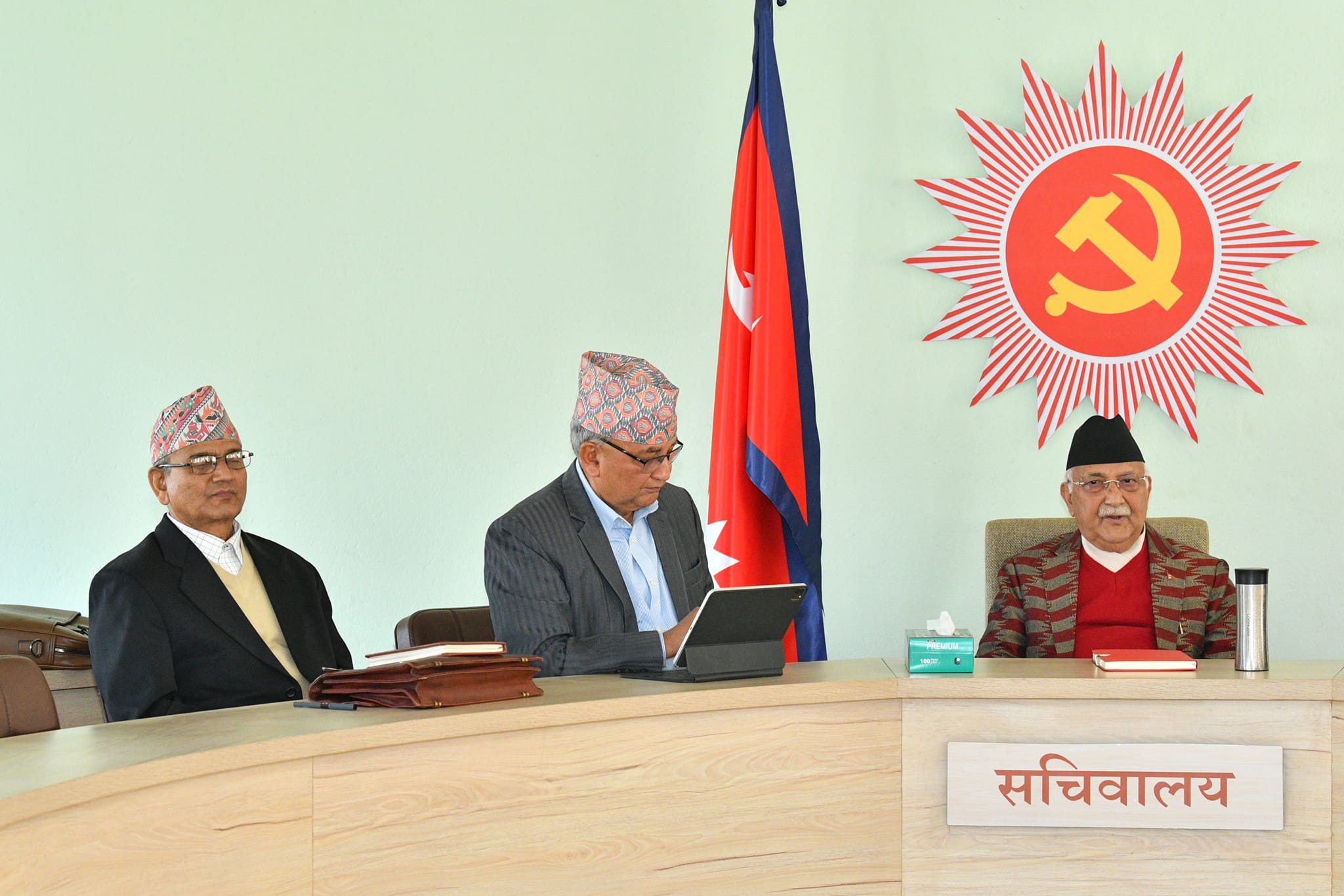 काठमाडौं। नेकपा एमालेको सचिवालय बैठक जारी रहेको छ । नेकपा माओवादी केन्द्रसँग सत्ता सहकार्य सुरू गरेको एमालेले पछिल्लो समयमा बिकसित राजनीतिक घटनाका बारेमा छलफल गरिरहेको छ ।पार्टी मुख्यालय च्यासल, ललितपुरमा जारी बैठकमा सरकारमा भावी कामकारबाहीको तथा नीति निर्माण तय गर्ने प्रमुख एजेण्डामा छलफल चलिरहेको छ ।