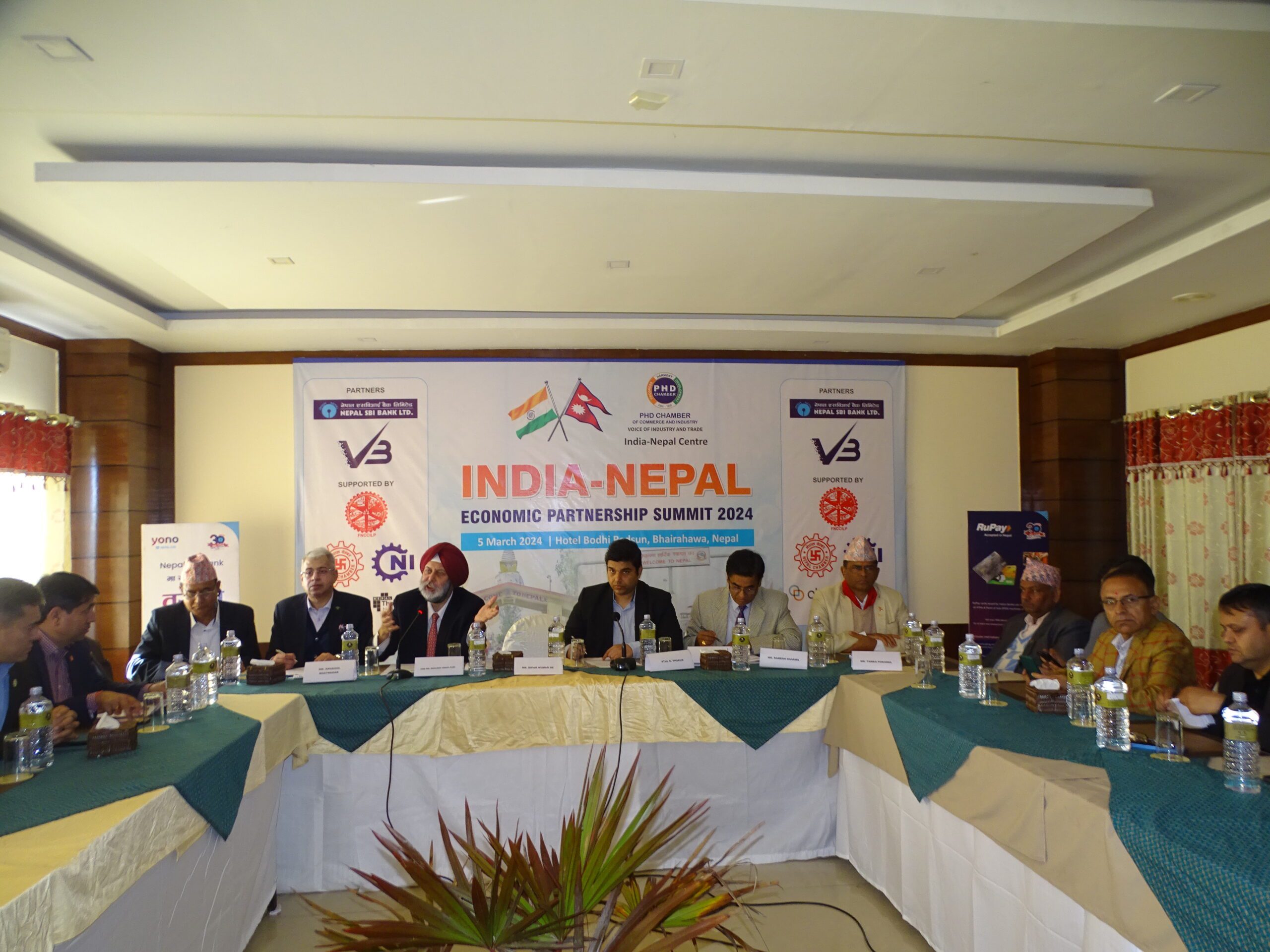 पिएचडी चेम्बर अफ कमर्स एन्ड इन्डस्ट्रीको आयोजना नेपाल उद्योग वाणिज्य महासंघ लुम्बिनी प्रदेशको संयोजन तथा नेपाल एसबीआई बैंकको सहकार्यमा भएको सम्मेलनमा बोल्दै नेपाल एसविआई बैंकका सल्लाहकार अनुकुल भटनाकरले दुई देशबीच धेरै वर्ष अगाडिबाट व्यपार भइरहेको बताउँदै यहाँ धेरै सम्भावना रहेको जनाए।पछिल्लो ५ वर्षमा कनेक्टीभिटीमा ठूलो परिवर्तन आएको उनले बताए। नेपालको प्रवेश विन्दुको रुपमा रहेको भैरहवा नाकाबाट सम्बन्ध सुमधुर बनाई दुवै देशको आर्थिक उन्नति हुने उनले बताए। नेपालका लागि पूर्वभारतीय राजदुत मनजीव सिंह पुरीले भारतको आर्थिक विकास तीव्र रुपले अघि बढाई धेरै परिवर्तन ल्याउनुमा निजि क्षेत्रको ठूलो भुमिका रहेको बताउँदै नेपाली निजी क्षेत्रले पनि भूमिका खेल्नु पर्ने बताए। रोटीवेटीको पुरानो सम्बन्ध जस्तै दुवै देशका निजी क्षेत्रसँगै बसेर छलफलबाट काम गरे नतिजा राम्रो हुने र दुवै देशका नागरिक विकसित हुने उनको भनाइ थियो।सीमामा दुवै देशको व्यापार सहजीकरणका लागि भएको समस्या समाधानका लागि पहल गर्ने उनले बताए।