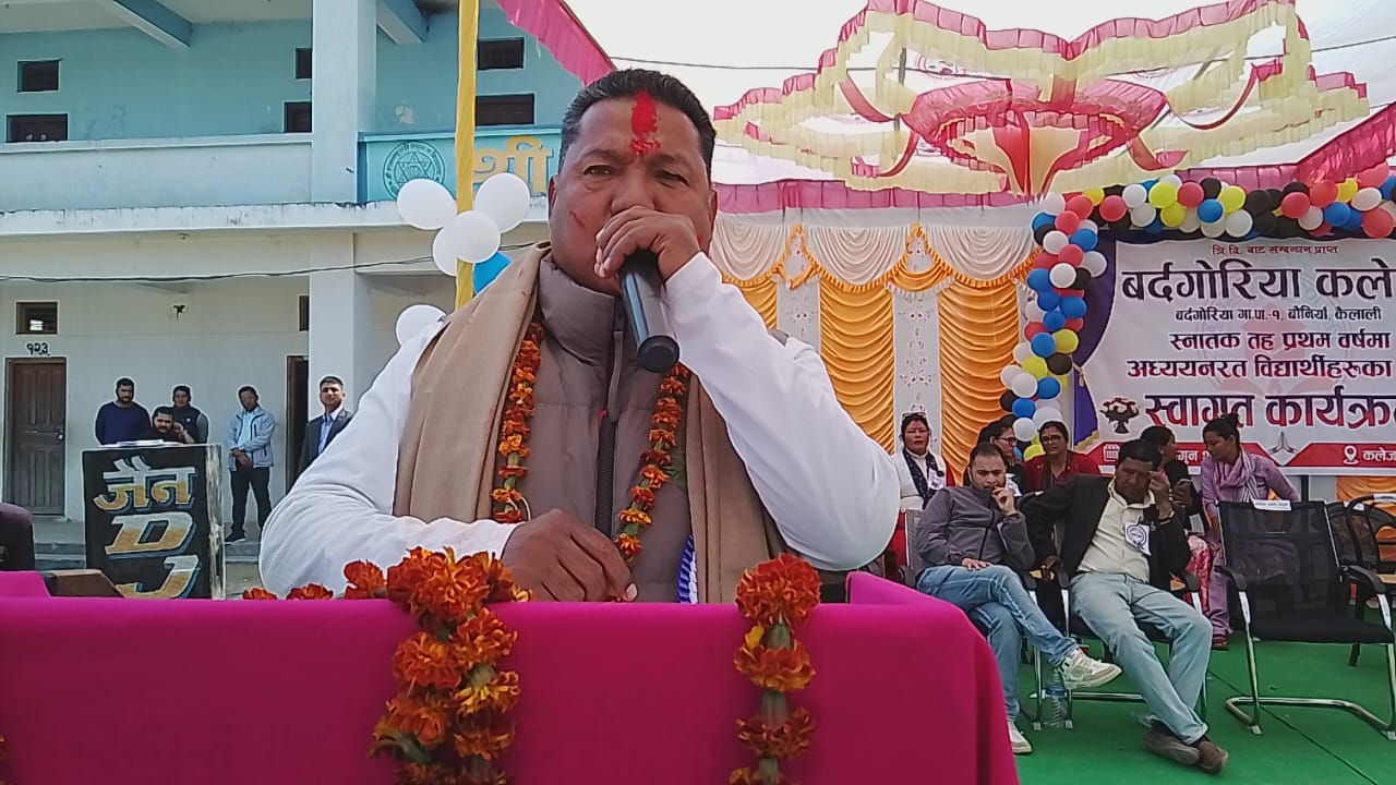 कार्यक्रममा बर्दगोरिया गाउँपालिका अध्यक्ष कार्यक्रमका प्रमुख अथिति कर्ण बहादुर कुँवर कार्यक्रममा बोल्दै हामीले कलेज मात्र ल्याएका हौ अब विद्यार्थीहरुले कसरी पहिचान दिन सक्छौ हामीले के गर्नु पर्छ मेरो व्यक्तिगत र बर्दगोरिया गाउँपालिकाबाट सबै कुरा पुरा गर्ने बातएका छन् । विद्यालयमा राजनीति गर्ने शिक्षकलाई हामी कारबाही गर्ने छौ। तपाईहरु लाई आज स्वागत गर्न पाउदा निकै खुशी लागेको पालिका अध्यक्ष कुँवरले बताए हुन।