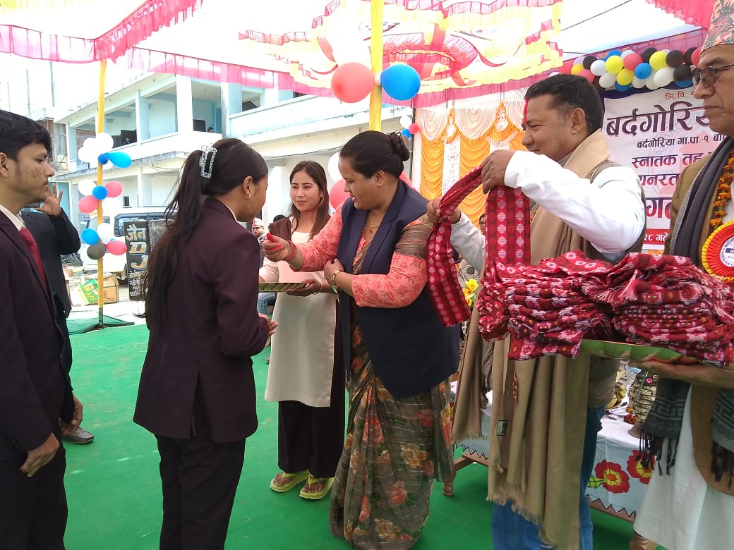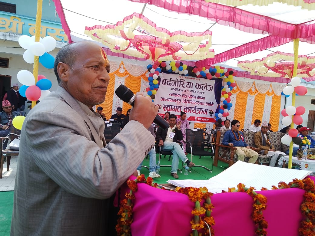 एक औपचारिक कार्यक्रम बीच भएको कार्यक्रममा बर्दगोरिया कलेजका संचालक समिति अध्यक्ष भिम कुँवरको सभापतिमा सुरु भएको कार्यक्रममा बर्दगोरिया गाउँपालिका अध्यक्ष कर्ण बहादुर कुँवर प्रमुख अथिति रहनु भएको थियो भने विशिष्ट अथिति बर्दगोरिया गाउँपालिका उपाध्यक्ष गणेश राज गिरी रहनु भएको थियो।