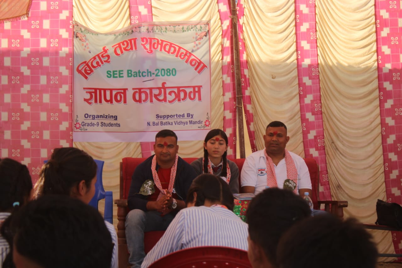 कार्यक्रममा प्रमुख अथिति बोल्दै विद्यालयलाई कसरी नाम आगडी बडाउने त्यो तपाईको हातमा छ। हिजो बिषय लगाएका विद्यार्थी अहिले ठुलो स्थानमा देख्न सकिन्छ त्यो हो सानो समयमा ठुलो ज्ञान प्राप्त गर्न सकिन्छ हो हामीले पनि मेहनत गर्नु पर्छ यो अब एस.ई.ईमा राम्रो नतिजा प्राप्त गर्न सकिन्छ। मलाई पुरा आशा छ विद्यार्थीहरुले राम्रो नतिजा ल्याउने छन् भन्ने आशा राखेको छु। हिजो हामीले पढाएका विद्यार्थीहरु अहिले ठुलो स्थानमा छन् त्यसै गरि तपाईहरु पनि त्यो स्थानमा हेर्न चाहन्छु भन्दै विद्यालयका संस्थापक मल्लले बताए ।