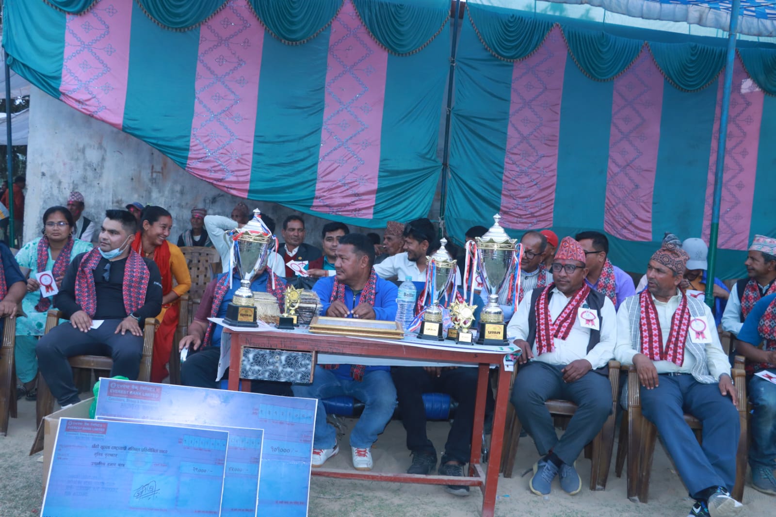 समापन तथा पुरस्कार वितरण कार्यक्रममा क्लबका अध्यक्ष भेषराज जैसीले स्थानीय सरकारले खेलकुद सञ्चालनका लागि आवश्यक बजेट विनियोजन गरि सहयोग गरेकोमा धन्यवाद दिए । उनले स्थानीय सरकारी, सामाजिक, सहकारी संघसंस्था, व्यापारी, बुद्धिजीवि, सामुदायिक वन, राजनीतिक दलको सहयोग र समर्थनले प्रतियोगितालाई निरन्तरता दिँदै सञ्चालन र सम्पन्न गर्न सफल भएको बताए ।