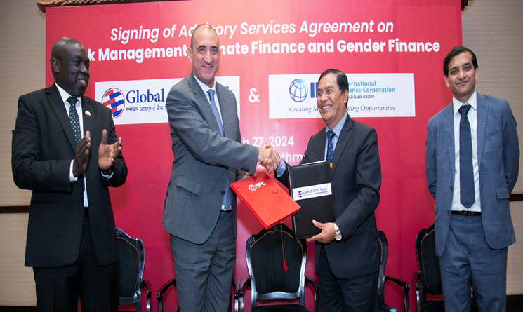 आइएफसीको यस सम्भौताअनुसारको परामर्शले नेपालमा जोखिम व्यवस्थापन, लैङ्गिक वित्त तथा जलवायु वित्त क्षेत्रमा नयाँ आयाम थपिनेमा बैंक विश्वस्त रहेको छ । उक्त समझदारी पत्रमा ग्लोबल आइएमई बैंकका प्रमुख कार्यकारी अधिकृत रत्नराज बज्राचार्य तथा आइएफसीको तर्फबाट दक्षिण एशिया क्षेत्रीय सल्लाहकार तथा अपस्ट्रीम प्रबन्धक मेहदी चेरकाउईबीच हस्ताक्षर कार्यक्रम सम्पन्न भएको छ ।