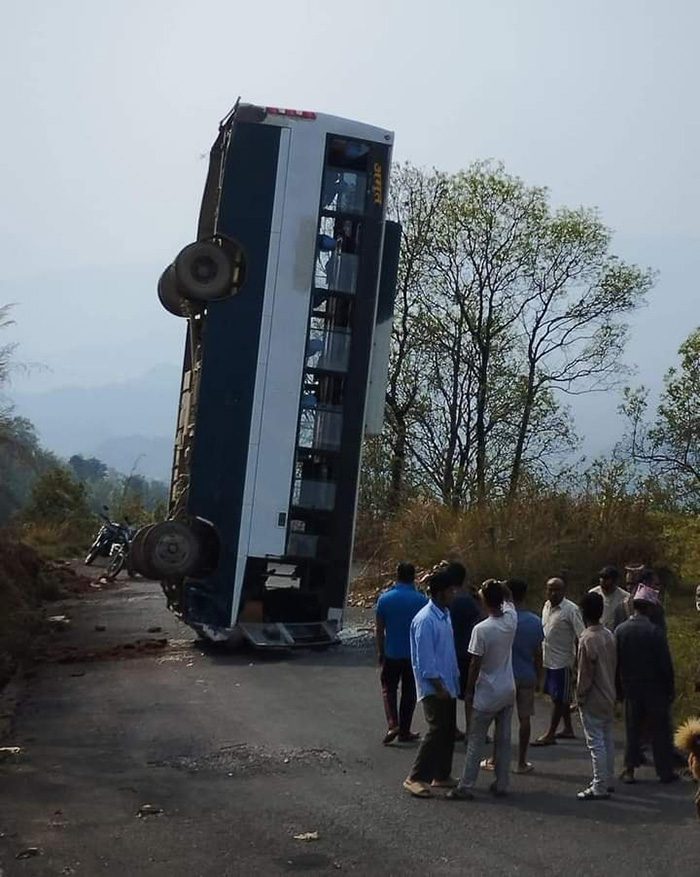 बसमा चालक र सहचालक मात्र रहेको र दुवै जना घाइते भएको प्रहरीले जनाएको छ । बस दुर्घटना भएर सडकमा ठाडै उभिएको तस्वीर र भिडियो सामाजिक सञ्जालमा भाइरल भएको छ ।