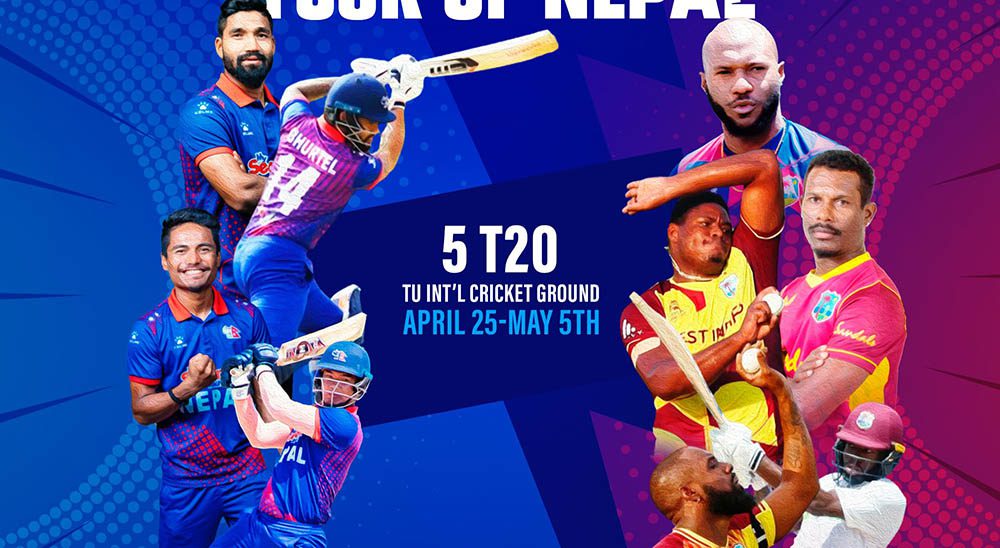 काठमाडौँ । वेस्ट इण्डिज ए टिम नेपाल टुरमा आउने भएको छ ।नेपाल क्रिकेट संघ (क्यान) का अनुसार वेस्ट इण्डिज ए टिमले नेपाली राष्ट्रिय क्रिकेट टिमसँग ५ टी-२० खेल्ने छ ।