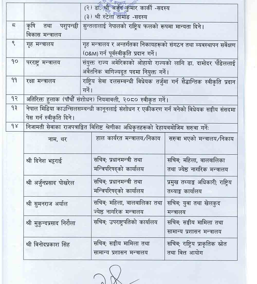काठमाडौँ । सरकारले चैत्र ३० गते बसेको मन्त्रिपरिषद्को बैठकका निर्णय सार्बजनिक गरेको छ ।सरकारकी प्रवक्ता एवं सञ्चार तथा सूचना प्रविधिमन्त्री रेखा शर्माले आइतबार मन्त्रिपरिषद्को बैठकका निर्णय सार्बजनिक गरेकी हुन् ।