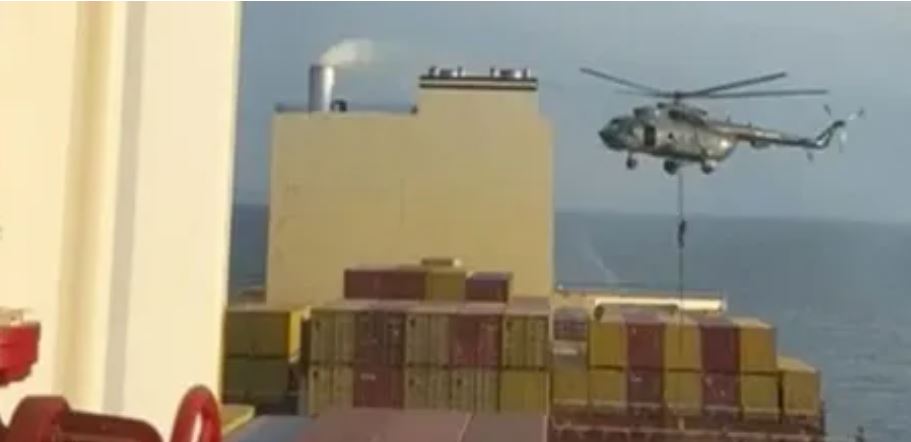 सामाजिक सञ्जालमा भाइरल भएको भिडियोमा आक्रमण भएको देख्न सकिन्छ । बोर्डमा चालक दलका सदस्यले भनेको सुन्न सकिन्छ– ‘बाहिर नआउ’। जहाज कब्जामा लिइएको हेलिकप्टर इरानको अर्धसैनिक रिभोलुसनरी गार्डको थियो। सो कार्गो जहाजमा इजरायली व्यापारी इअल अफरको पनि स्वामित्वमा रहेको जनाइएको छ।