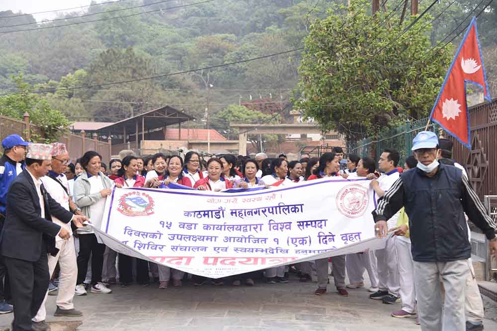 स्वस्थ्य जीवनका लागि योग र सम्पदाको पहिचान प्रवर्धनका लागि पदयात्रा गरिएको वडा १५ का अध्यक्ष ईश्वरमान डंगोलले जानकारी दिए । २२ सय मिटरका दुरीमा भएका २ वटा सम्पदा क्षेत्रका बिचमा दर्जनौँ भौतिक सम्पदा छन् । ती हरेक सम्पदासँग अभौतिक क्रियाकलाप हुने गरेका छन् । स्थानीयबासीलाई यी सम्पदाको सम्बन्ध बुझाउन पदयात्रा गरिएको हो । डंगोलले स्पष्ट पारे ।