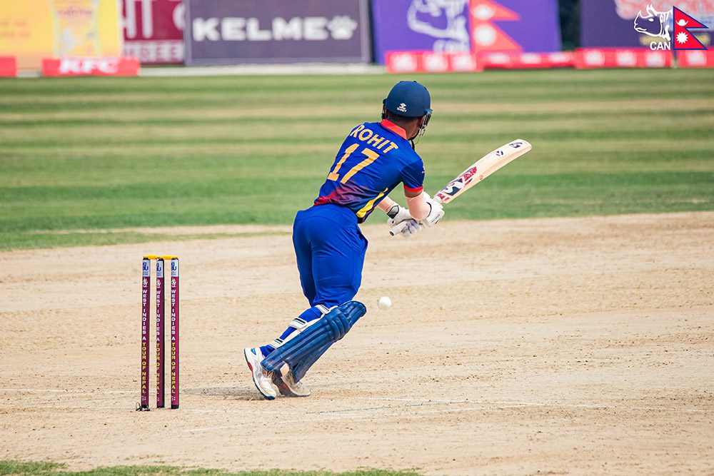 काठमाडौँ । नेपालका कप्तान रोहित पौडेल ११२ रन बनाएर आउट भएका छन् ।वेस्ट इन्डिज ए ले दिएको २०५ रनको लक्ष्य पछाएको नेपालले यो समाचार तयार गरुन्जेल १८.५ ओभरमा ६ विकेट गुमाएर १९२ रन बनाएको छ ।