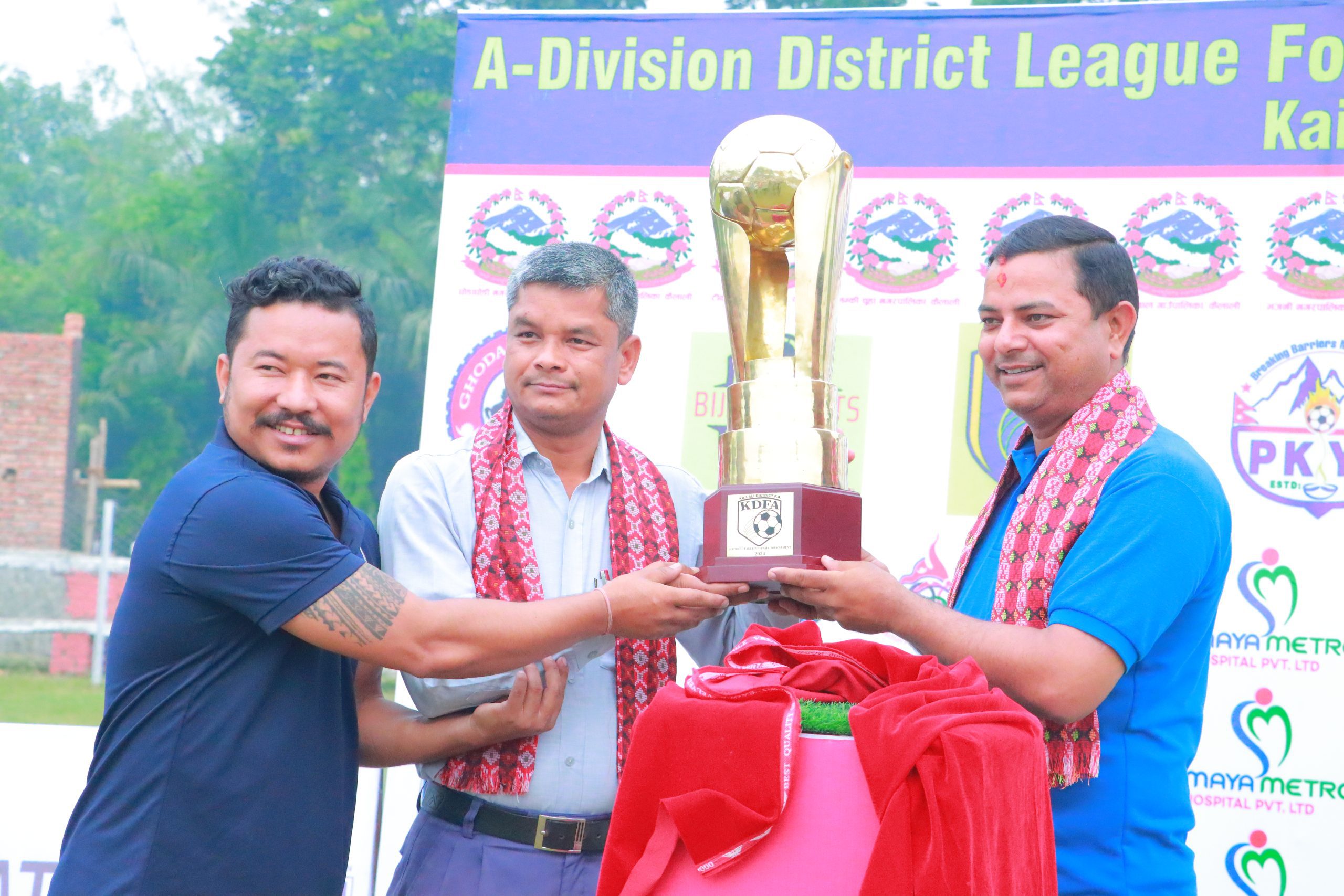 जिल्ला लिग फुटबल प्रतियोगिताको लागि आज ट्रफि पनि सार्वजनिक गरिएको छ । राष्ट्रिय फुटबल टिमका पूर्व कप्तान हरि खड्काले प्रतियोगिताको ट्रफि सार्वजनिक गरेका हुन् । ट्रफि सार्वजनिक गर्दै उनले घोडाघोडी नगरपालिकाका मेयर खडक रावत, प्रवक्ता घनश्याम ओझा र स्थानीय आयोजक घोडाघोडी क्लबका होम तामाङलाई ट्रफि हस्तान्तरण गरेका थिए ।