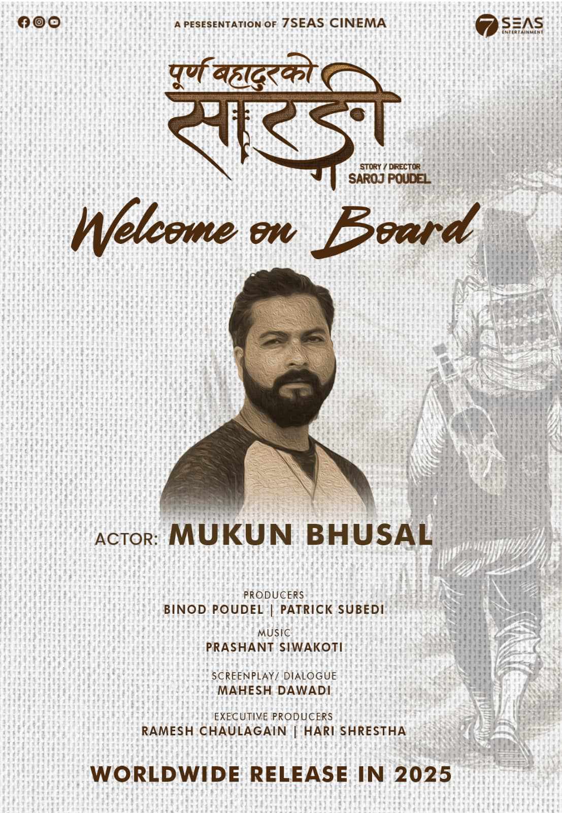 काठमाडौं । पछिल्लो समय नेपाली फिल्म क्षेत्रका व्यस्त अभिनेता हुन् मुकुन भुषाल। थोरै फिल्ममा अभिनय गर्ने र छनोट गरेर मात्रै काम गर्न रुचाउने उनी फिल्म ‘पूर्ण बहादुरको सारङ्गी’मा अनुबन्धित भएका छन्।अन्तर्राष्ट्रिय वितरण कम्पनी सेभेन सिज इन्टरटेनमेन्टले निर्माण गर्न लागेको फिल्मका लागि निर्माणपक्षले मुकुनसँग केही दिन अघि मात्रै लिखित सम्झौता गरेको हो।