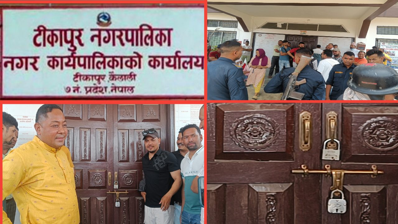 कैलाली। कैलालीको टिकापुर नगरपालिकामा तालाबन्दी गरिएको छ।